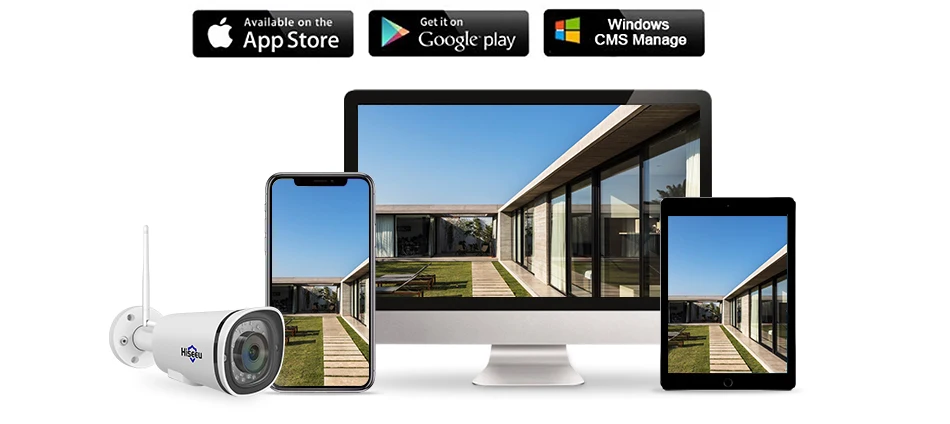 Встроенный микрофон для записи звука Высокая производительность 8MP 4K / 6MP / 5MP / 4MP / 2MP / 1MP Слот для sd-карты-Поддержка sd-карты до 128 ГБ 24 шт. инфракрасный светодиодный светильник до 100 футов Поддержка протокола ONVIF Поддержка удаленного просмотра Android/IOS/PC Обнаружение движения и Push-оповещение App сообщения 2,4 г Гц WI-FI поддерживается