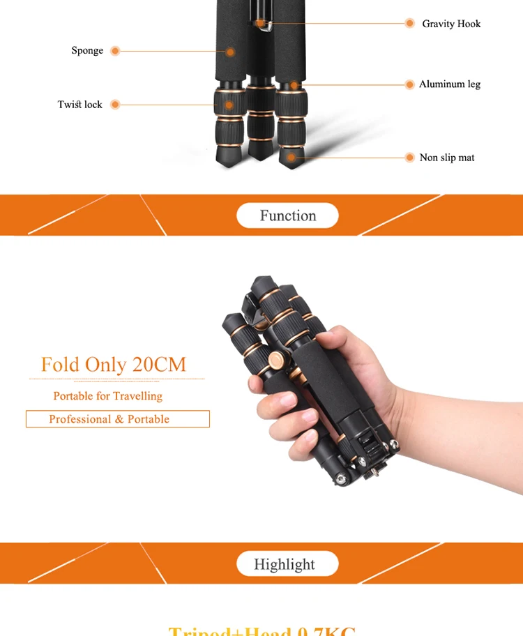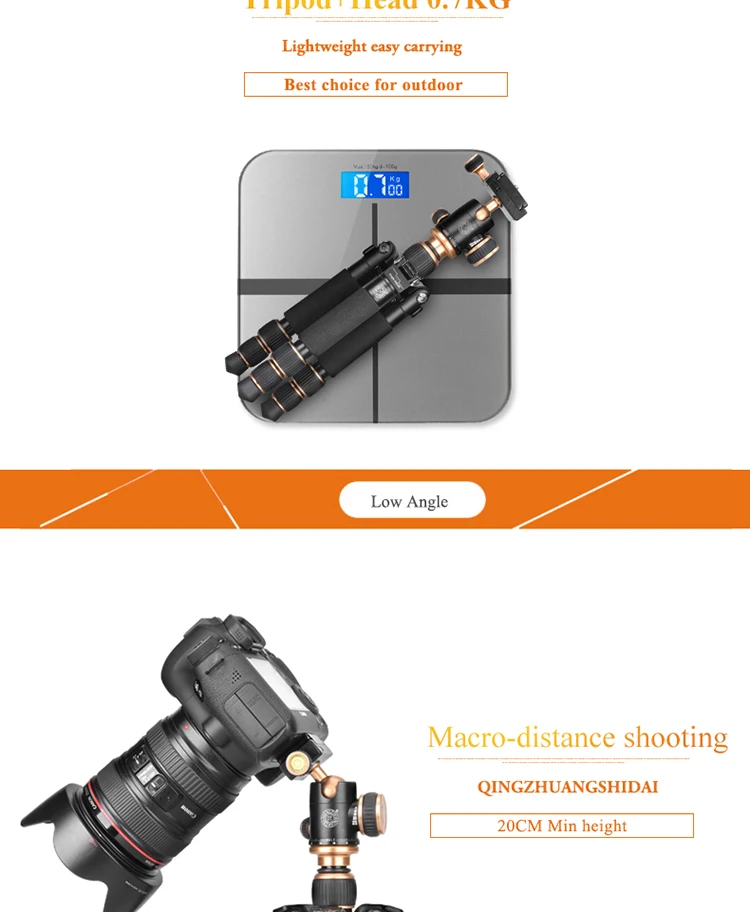 Описание: Штатив изготовлен из алюминиевого сплава, прочный и стабильный; С использованием штатива, он может достичь большей производительности и поддерживать качество изображения для обрезания больших размеров изображения Портативный компактный настольный мини-штатив для макросъемки, минимальная высота достигает 200 мм, поэтому это лучший выбор для макросъемки с меньшим размером, легким весом и близким расстоянием Распространяется на 21,3 "/54 см высотой, складывается до 7,9"/20 см, 3 секции с регулируемой высотой ног трубки Нескользящая конструкция для крепления штатива. Максимальный вес нагрузки 11 фунтов/5 кг для оптимальной производительности 360 градусов циферблат поворотной шаровой головки с пузырьковым уровнем обеспечит вам панорамный вид. Трехпозиционная система регулировки угла ноги обеспечивает гибкую съемку Трехпозиционная система регулировки угла ноги обеспечивает гибкую съемку. Быстросъемная Монтажная пластина обеспечивает быстрый переход между кадрами. Сумка для переноски достаточно для удобства. Спецификация: Материал: алюминиевый сплав Вес: 1.54lbs/0,7 кг Максимальная высота: 21,3 "/54 см Минимальная высота: 7,9 "/20 см Грузоподъемность: 11 фунтов/5 кг Винт: 1/4" Комплектация: 1 мини-штатив Q166 Чехол для переноски (1 шт.); 1 х Маленький гаечный ключ
