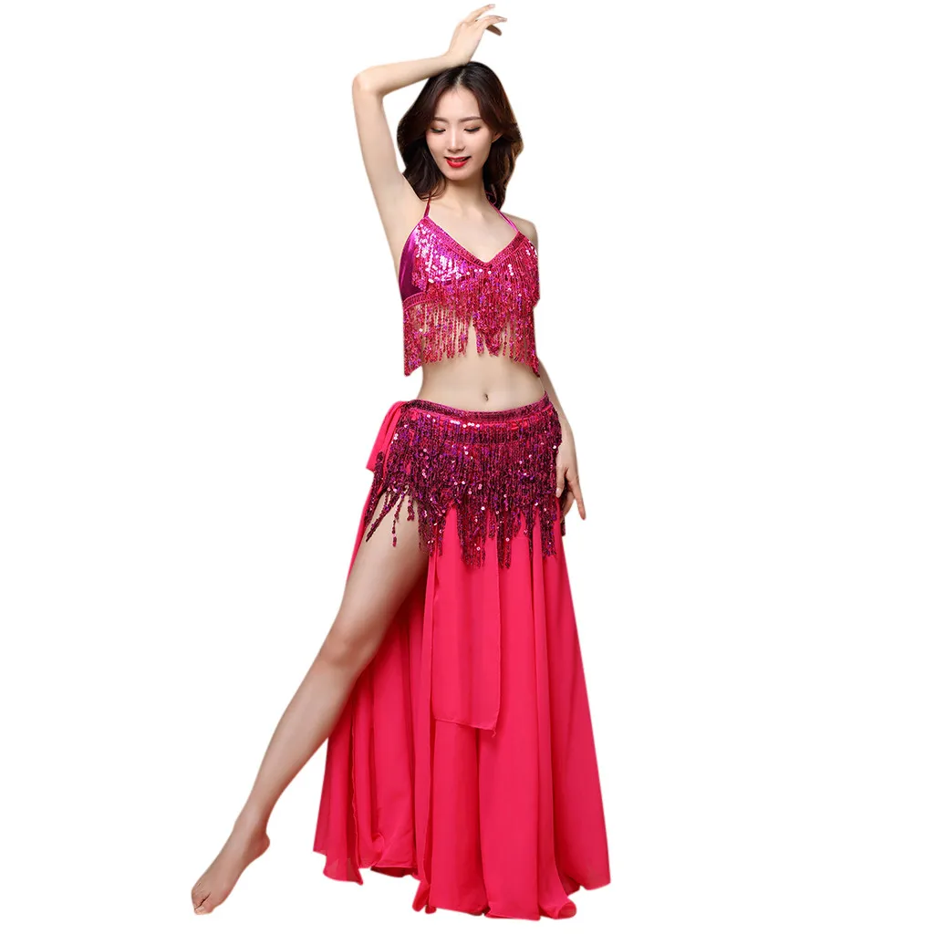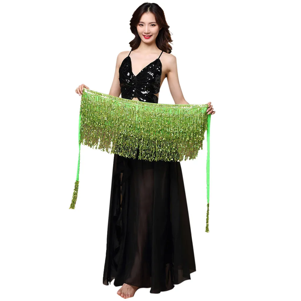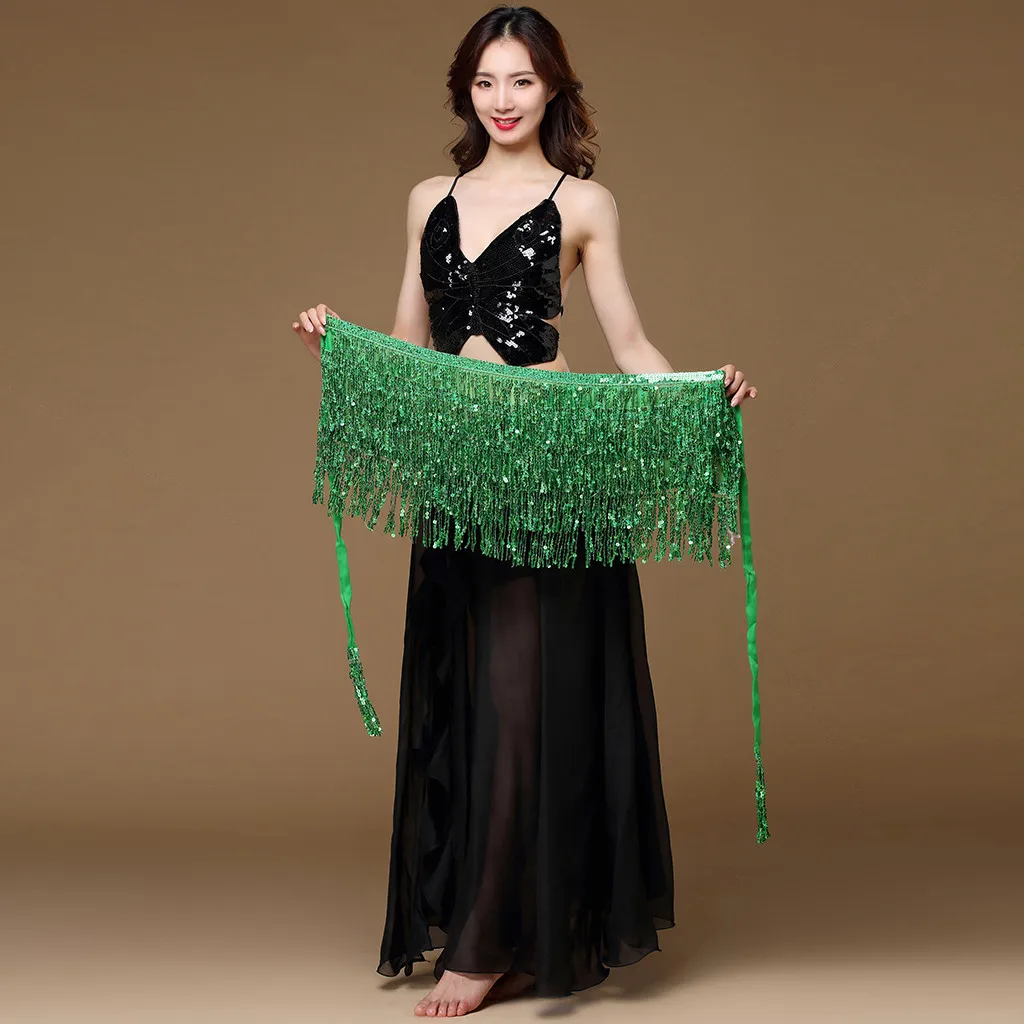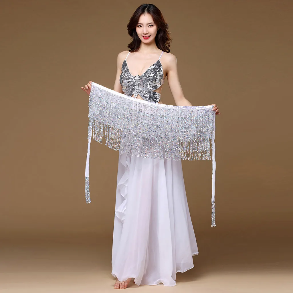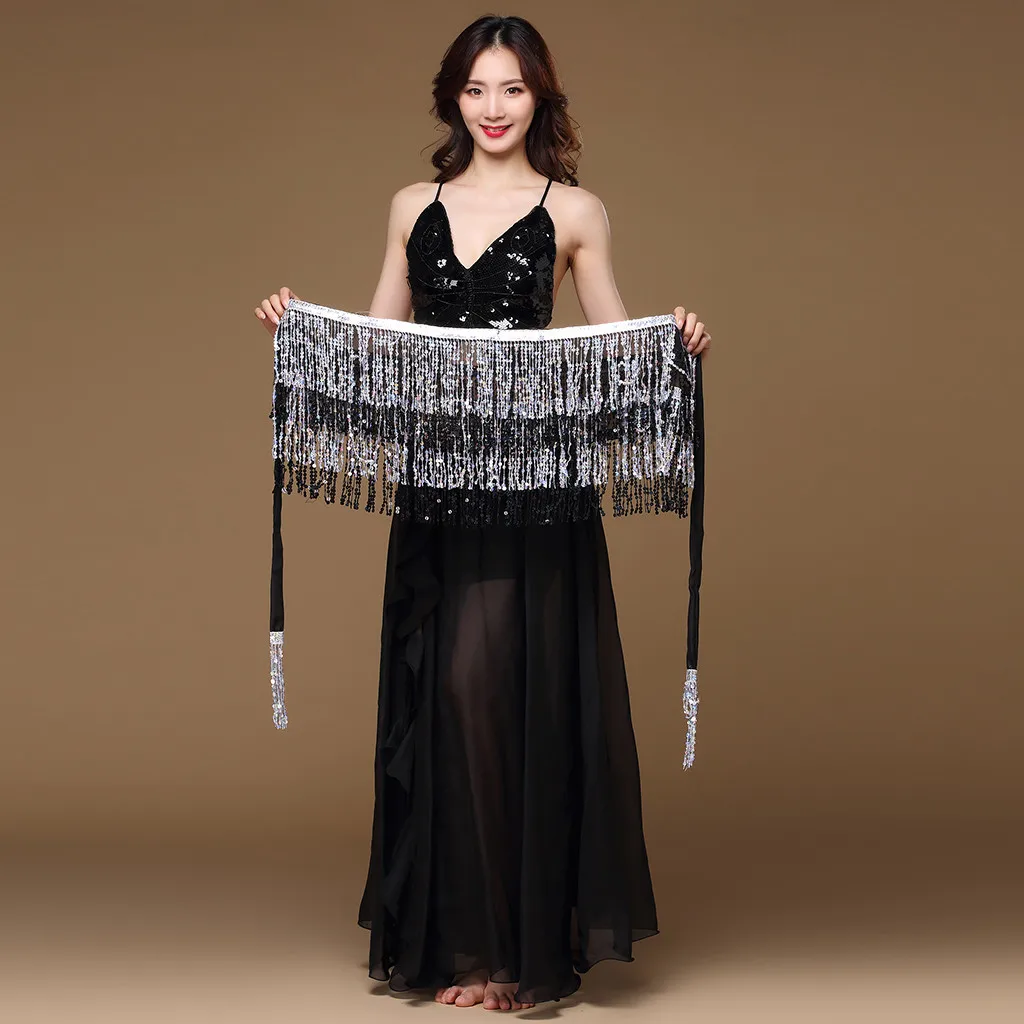 Посылка Включает: 1 шт.Женский костюм для танца живота, пояс, юбка, обертка на бедрах, пайетки, бусины с кисточками, шарф