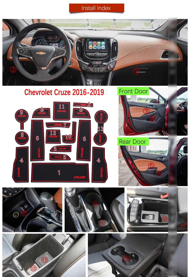 Автомобильный гаджет, коврик для Chevrolet Cruze 2 2016 2017 2018 2019 mk2 Chevy Sedan, аксессуары для люков, гелевая накладка, резиновый слот для ворот, коврик, чашки, коврики, Tapis Voiture