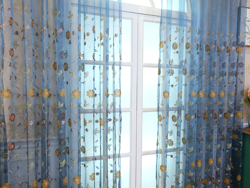 Роскошный занавес в рустикальном стиле с листьями для гостиной, балкона, синего цвета, кружевной цветочный вуаль, кухонная драпировка из тюля, занавеска