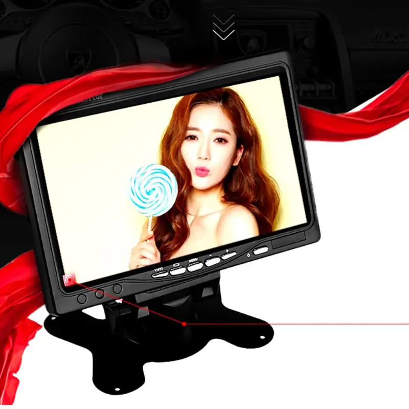 Сцены будут вырезаны на камеру заднего вида автоматически, когда вы поддерживаете автомобиль и после этого перейдете на исходную сцену. Поддержка вращения экрана, соотношение экрана 16:9/4:3 регулируется. Поддержка регулировки яркости, контрастности, цвета. 2 способа установки: подставка или крепление.