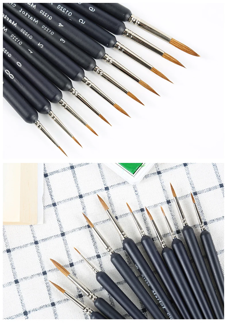 Пункты маркированного списка: 1. Высококачественный материал: хорошо адсорбирует пигмент и обладает умеренной эластичностью. 2. Соединение стальной трубы: с гладкой и круглой текстурой, плотно крепится с помощью ручки, эффективно предотвращая падение ручки с держателя 3. Комфортные ощущения: черный держатель для ручки, длинный стержень, умеренная длина ручки 4. Хороший эффект: легко контурить и форму, и с замечательным эффектом живописи 5. Широко применяется: подходит для гуаши, акриловой живописи, масляной живописи и т. Д. Параметры: Название: Набор ручек для рисования в 10 упаковках Материал: сталь, дерево, бархатные волосы Модель: 000 #, 00 #, 0 #, 1 #, 2 #, 3 #, 4 #, 5 #, 6 #, 7 # Размер: как показано на рисунке Вес нетто: около 100 г Упаковка: мешок из полиуретана с открытыми порами Комплектация: Ручка для рисования * 10