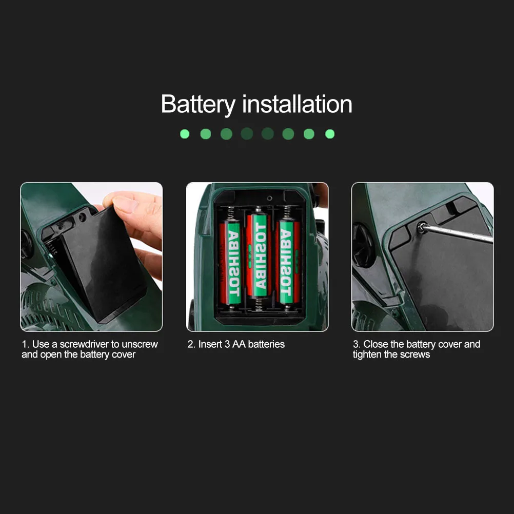 Батарея: игрушечная бензопила требует 3 аа, которые не включены в наш набор игрушек, пожалуйста, подготовьте самостоятельно заранее.