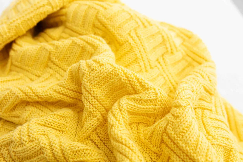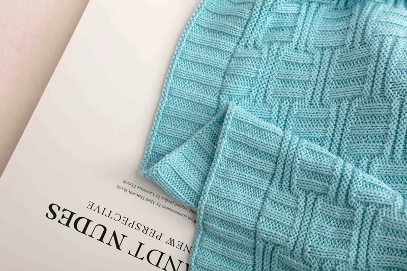 Please note: There may be 1~3cm error for manual measurement and a bit color difference on web shopping. Material : cotton/acrylic. Stretch Size; 130x160cm, 800g Colors: 7 colors available as picture showed. Features: * this blanket is perfect for all seasons and makes a great addition to any living room or bedroom. * It is knit from soft cotton. Eco-friendly and skin friendly. *Machine wash cold, gentle cycle, only non chlorine bleach when needed, tumble dry low, Do not iron.