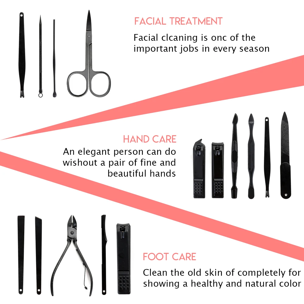 Полный набор инструментов для обрезки ногтей и инструментов для очистки лица упакован в небольшой чехол, который вы можете хранить дома, не беспокоясь о беспорядке, и его также удобно брать с собой в путешествие.