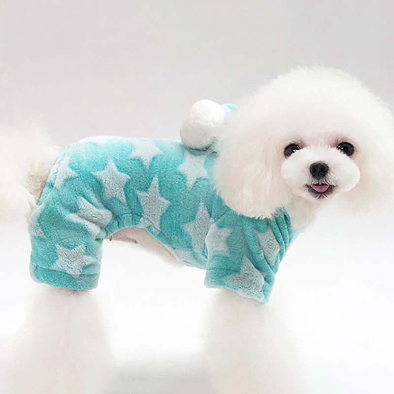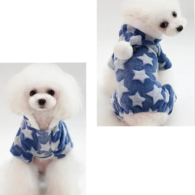 Dozzlor/милое зимнее толстое теплое пальто для питомцев, одежда для маленьких собак с принтом звезд, флисовая куртка с капюшоном и четырьмя штанинами, новый год чихуахуа