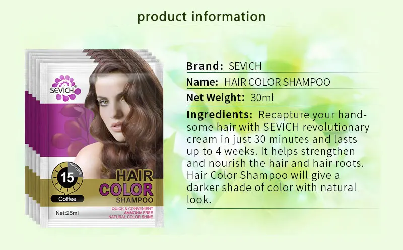 Sevich 5 шт./лот 5 цветов черный шампунь для волос краска для волос 5 минут мгновенный цвет волос для мужчин и женщин 1 шт. набор для ухода за волосами
