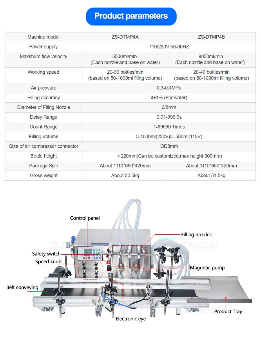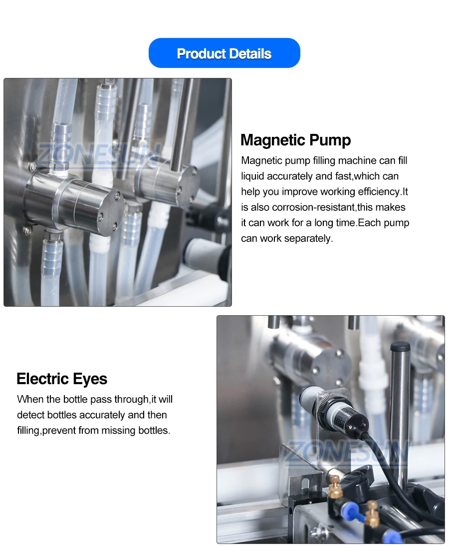Эта машина подходит для заполнения жидкости с низкой вязкостью, такой как сок, молоко, соевый соус, эфирное масло, лосьон и т. д. Его можно использовать в небольшой производственной линии, которая может быть соединена с настольной укупорочной машиной и маркировочной машиной, что повышает эффективность работы.