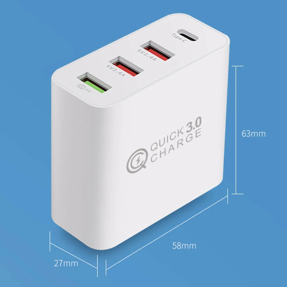 -3 порта USB с различной выходной мощностью и 1 порт c-типа для удовлетворения ваших потребностей.