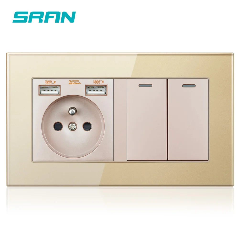 2 отделения 1/2/3 способ + розетки с usb(146 мм * 86 мм) 16A Стандартный Заземленный штепсельная вилка французская Входное напряжение: 110-240 В Напряжение на выходе USB: реальных 5V 2100ma 16A переключатель 2 gang 1/2/3 путь