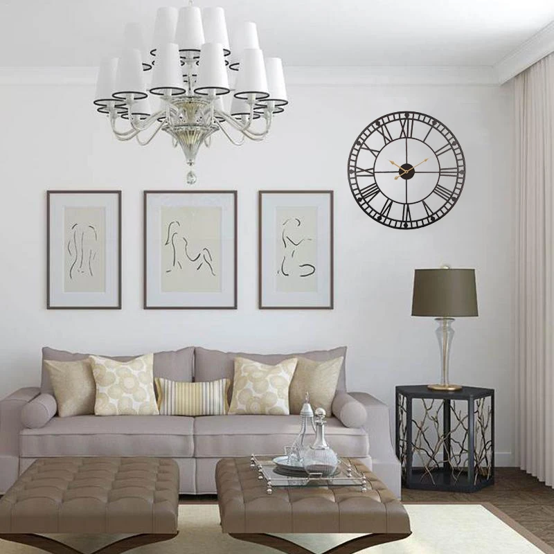 60 см современные металлические римские цифры большие настенные часы домашний декор Лофт кафе железная подвеска бесшумные Ретро Винтажные настенные часы в настенных часах