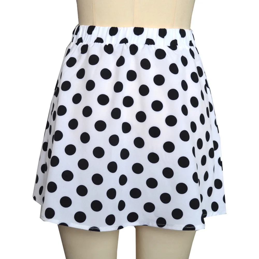 Вам понравится эта милая юбка во время летних прогулок. Эта юбка с принтом в горошек. Это относится к пляжу. Вы можете сочетать с вашим Босоножки на блочном каблуке или туфли без задника дополняют образ.