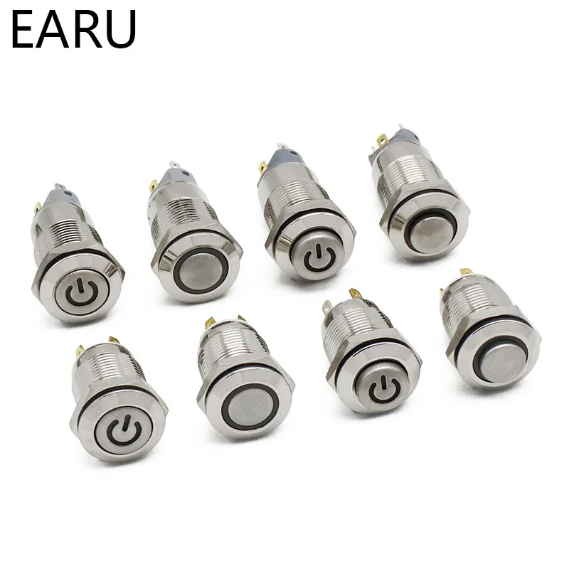12 мм плоская Высокая Головка водонепроницаемый металлический кнопочный переключатель светодиодный светильник Выключатель без фиксации автомобильный двигатель компьютер ПК выключатель питания 3-380 В
