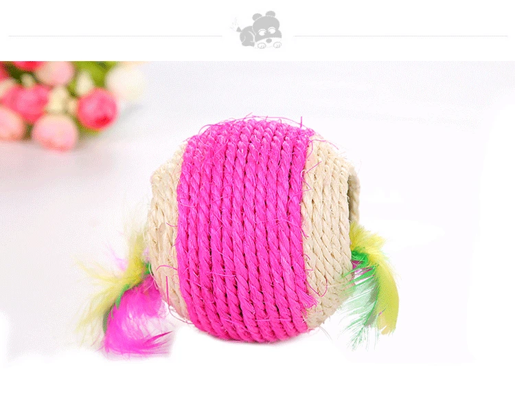 Характеристики: портативный, интересный, прочный Тип игрушек: игрушки для кошек Цвет: случайный Материал: Натуральный сизаль + перо Диаметр: около 7 см Посылка: 1 шт. Примечание: 1. Фактический цвет может немного отличаться от изображения. 2. Из-за ручного измерения размер может отличаться на 1-2 см.
