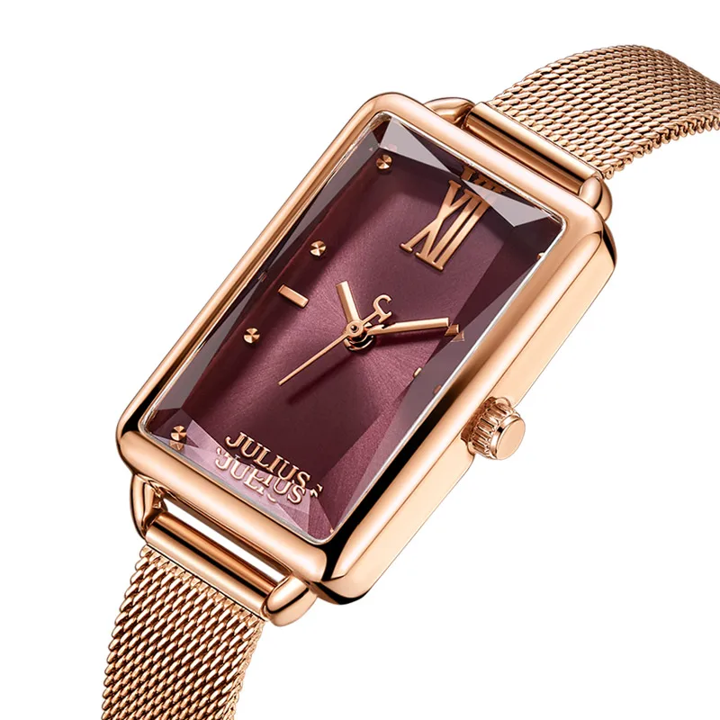 Julius часы JA-1215 прямоугольные часы винно-красные женские тонкие часы кварцевые модные Relojes подарок на день рождения для девушки