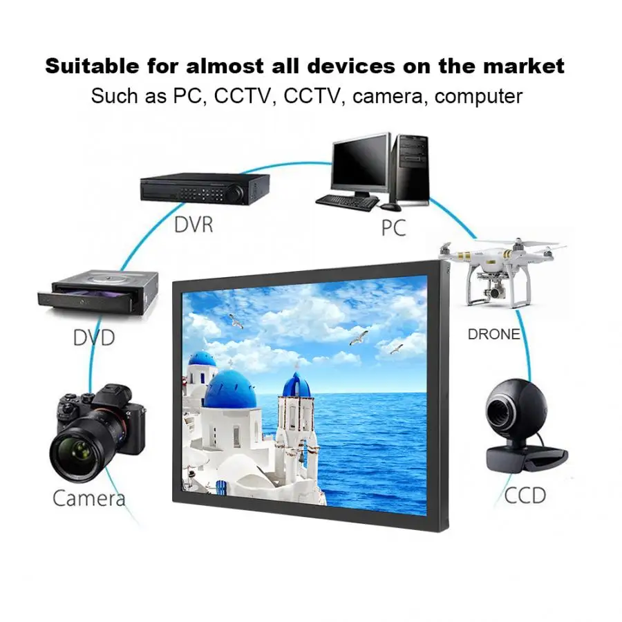 1 x Экран дисплея USB кабель (1 шт.); Кабель VGA (1 шт.); 1 х ваза вешалка 1 х Крепежные винты 1 x Мощность шнур Блок питания (1 шт.) 2 х Монтажный перегородка