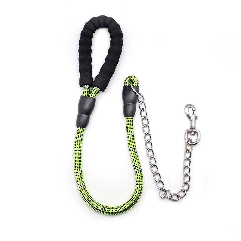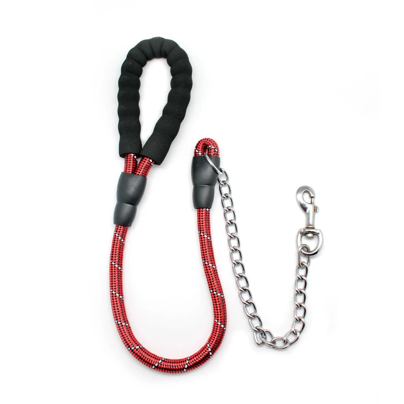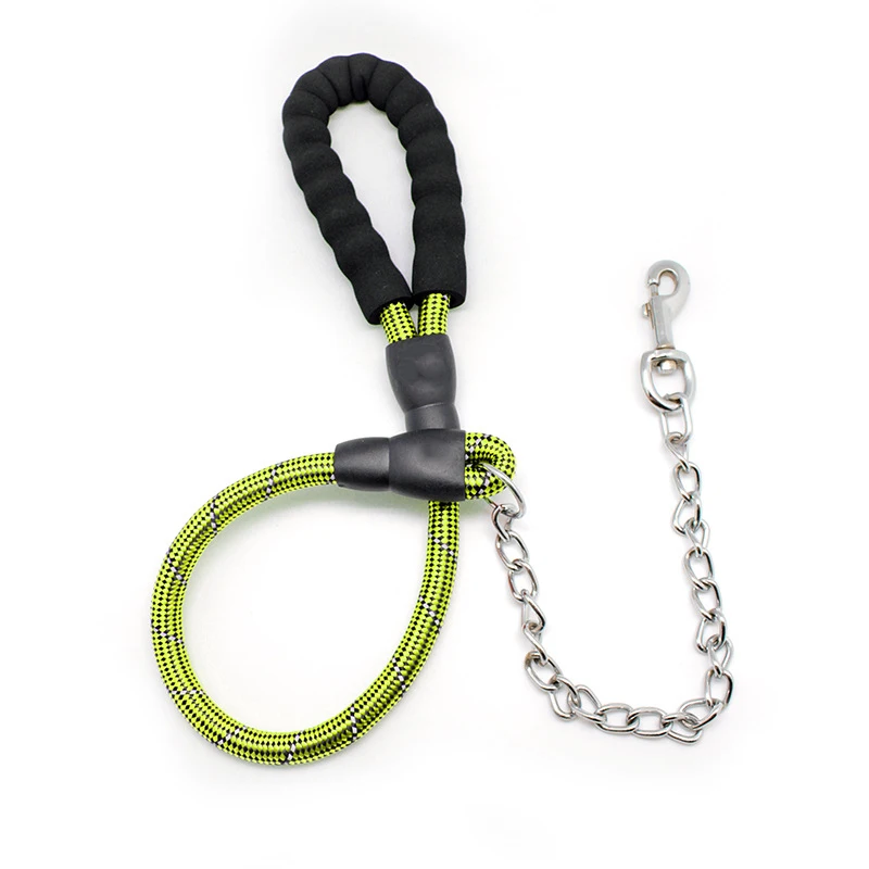Светоотражающий Поводок-цепочка для больших собак из нержавеющей стали поводок для домашних животных поводок для собак удобные поводки с поролоновой ручкой для средние и большие собаки