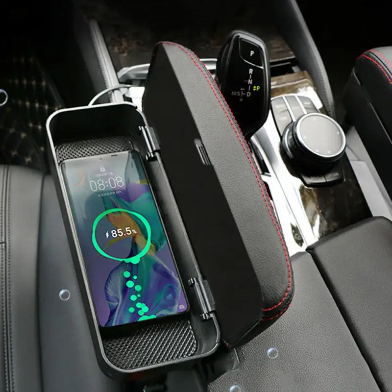 Регулируемая Автомобильная центральная консоль подлокотник сиденье зазор локоть поддержка подлокотника беспроводной зарядный ящик для хранения Органайзер с USB кабелем