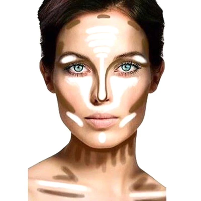 Нанесите контурную палку сверху на лоб и вдоль линии волос, под щеками и костями по обе стороны носа, под линией челюсти и подбородка.