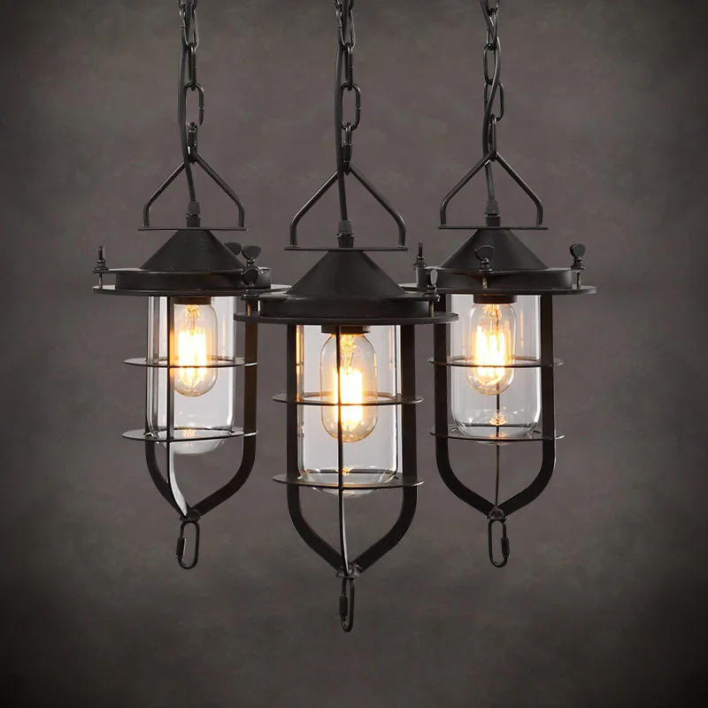 Промышленный подвесной светильник в стиле ретро с черной клеткой, стеклянная лампа