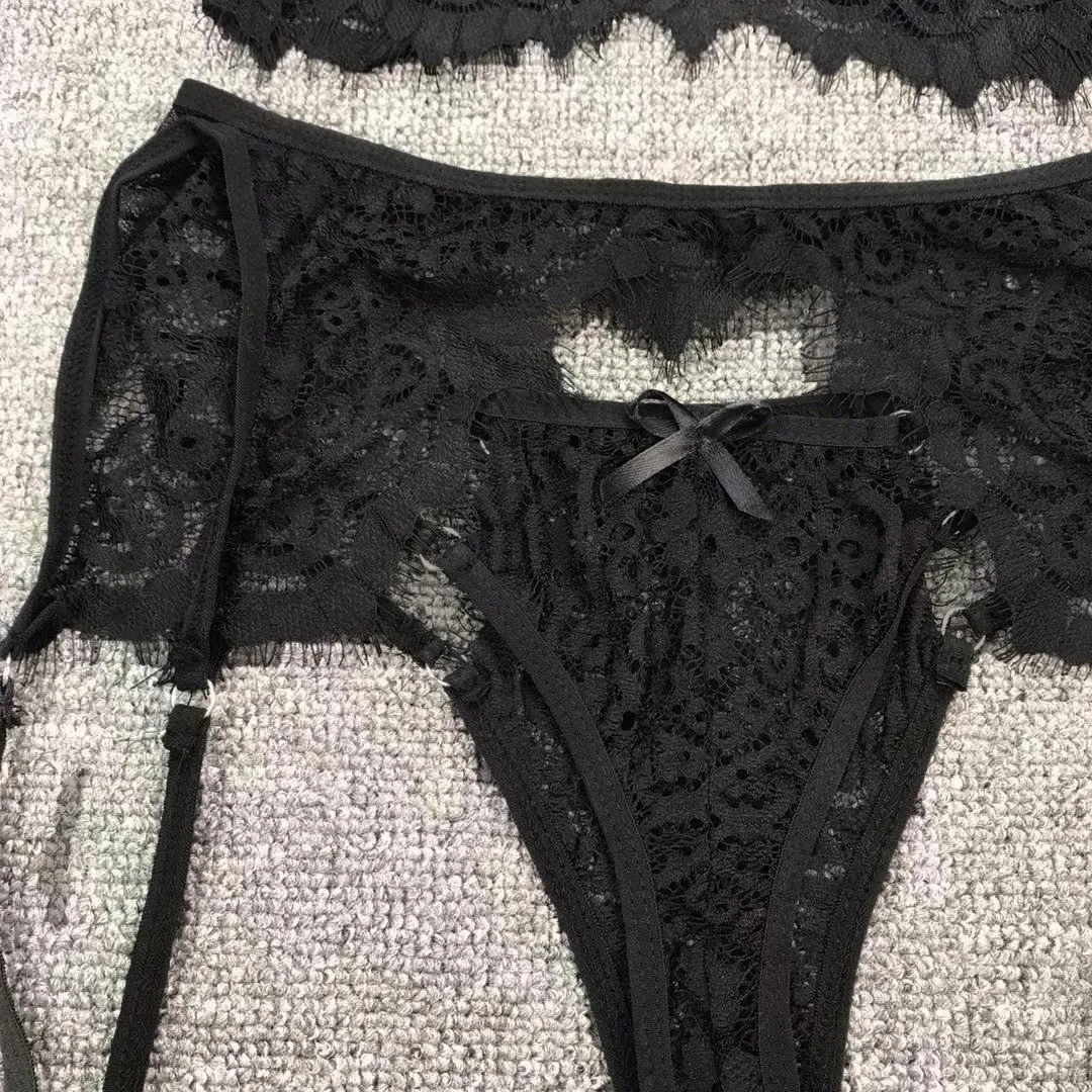 Micro Bikini Sex Shop Lenceria 3PC Women Lace Sexy Lingerie Straps Bra and Panty Garter Set Underwear Babydoll Lenceria Mujer