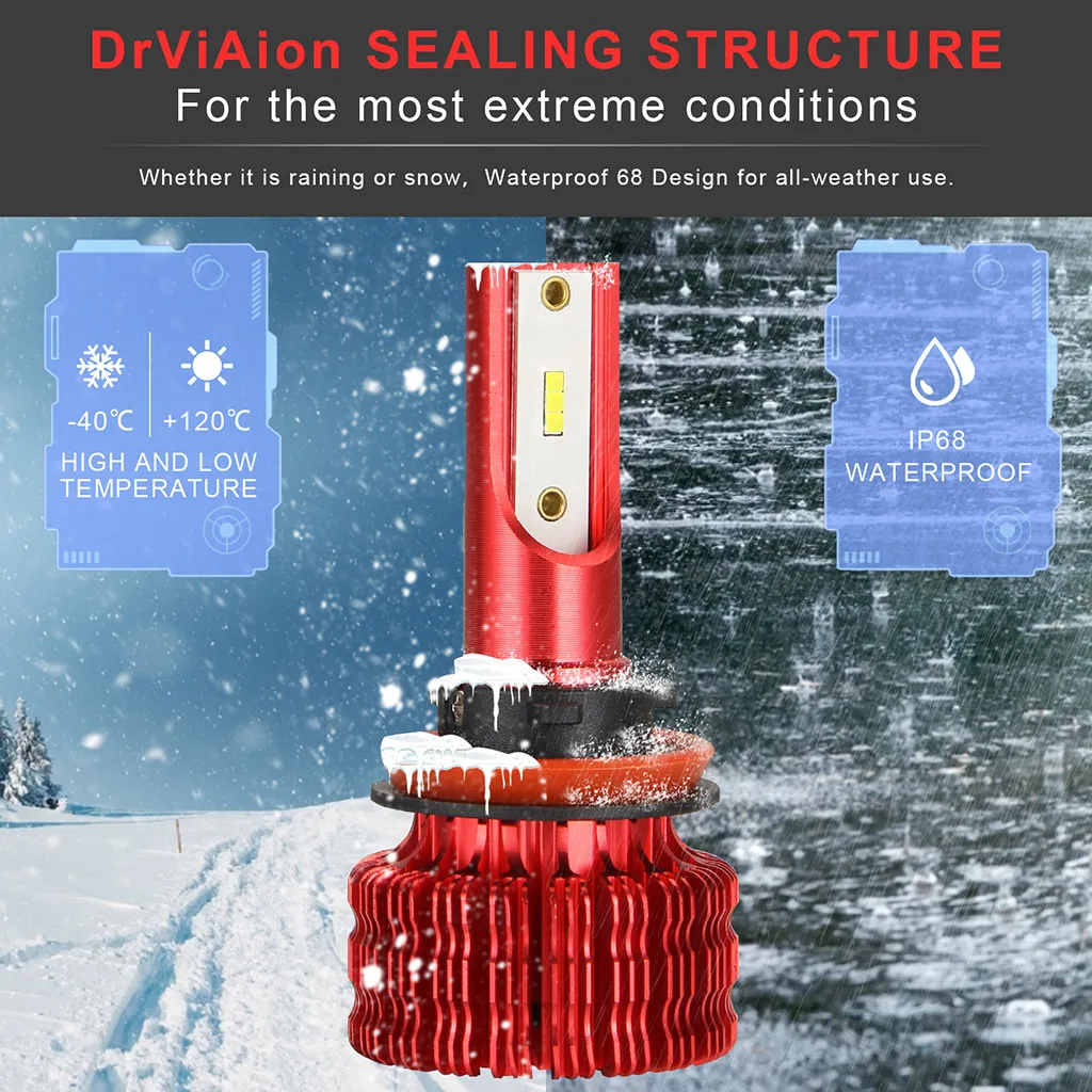 Новый Автомобильный светодиодный светильник D11RB-H8/H9/H11 50 Вт 10000лм ODM светодиодный автомобильный головной светильник s полностью алюминиевый x2