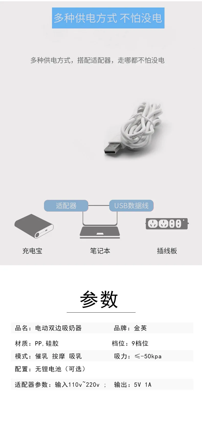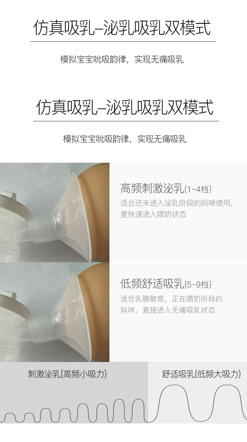 Информация о продукте: Наименование: двойной Электрический молокоотсос Бренд: Emon Стандартная мощность: 220 В 50 Гц Объем бутылки: 150 мл Размер бутылки: 270x70 мм Размер машины: 150x150 мм Способ управления: сенсорный экран Материал: пищевой силикон + PP / BPA бесплатно Вес: 670 г Цвет: белый Посылка: Двойной с аксессуарами для сосков с руководством на английском языке Особенности продукта: 1, сильное всасывание с 3 режимами и 1 ~ 9 шестернями; Массаж, лактагога и сосание, свободно переключается и отвечает требованиям сосания в течение разного времени. 2, одиночный и двойной выбор свободно с интеллектуальным контролем. 3, компактный корпус, легко носить с собой и хранить. 4, сенсорный экран делает его более легким и очень маленьким, так же, как режим отключения звука. 5. Сосание лепестков, которое выглядит так же, как у ребенка. 6, за исключением машины, кипящая вода и дезинфекция пригодны для всех компонентов. 7, удобный usb-кабель для зарядки, который легче для мамы.