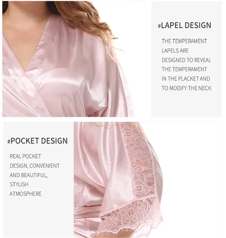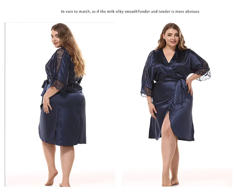 Фабричное производство, Женский атласный Шелковый спальный халат, имитация шелка, большие размеры, женские кружевные сексуальные банные халаты, женское кимоно с рукавом до локтя, 96231