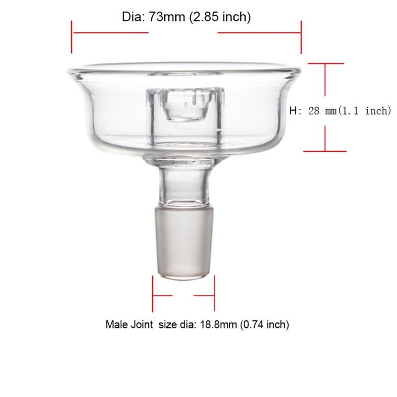18,8 мм (0,74 дюйма) Диаметр Мужской фитинг стеклянный табак для кальяна чаша для ароматизатора