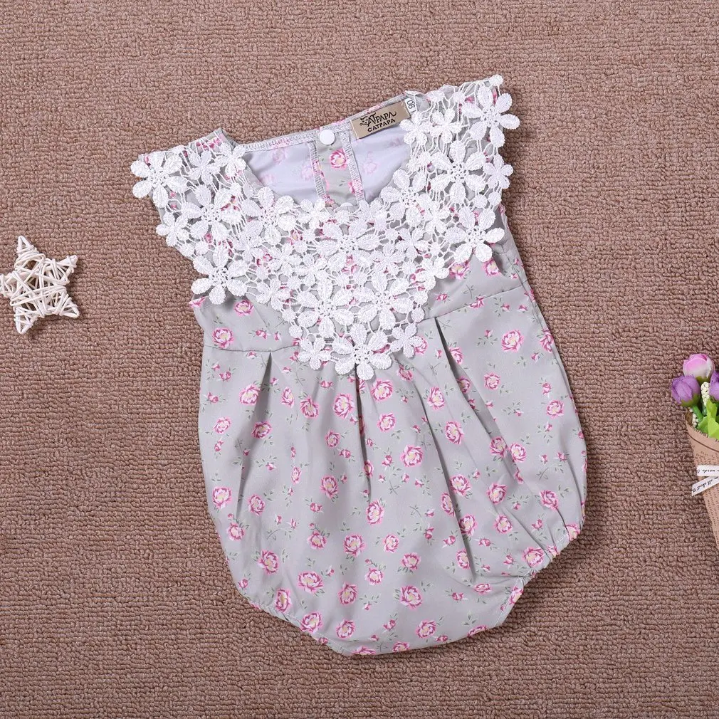 Удобные детские комбинезоны без рукавов; кружевные с цветочным принтом; комбинезоны для новорожденных девочек; комбинезоны для маленьких детей; одежда для малышей