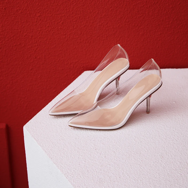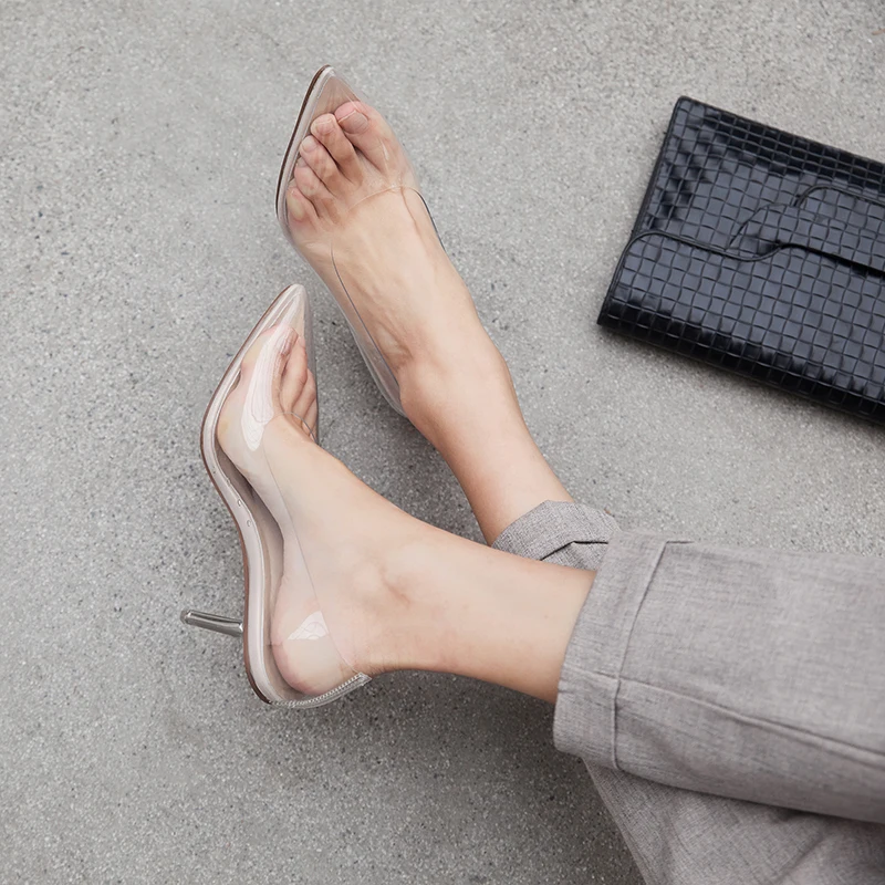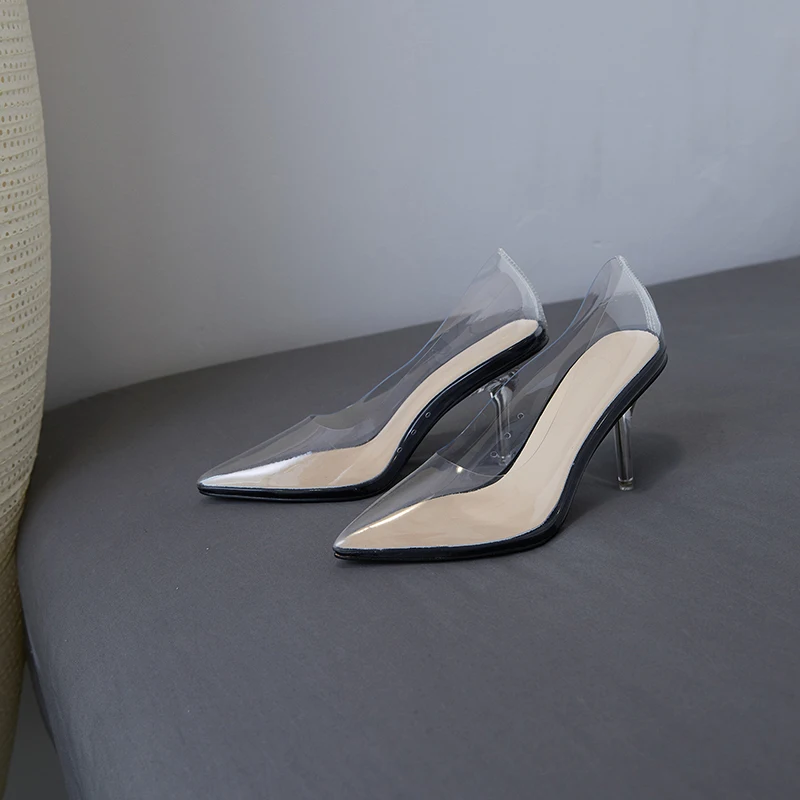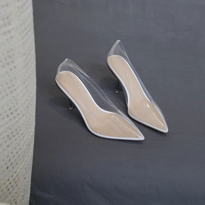 Оригинальные элегантные прозрачные стильные туфли-лодочки; Соблазнительные повседневные туфли с острым носком; Туфли на высоком каблуке-шпильке с прозрачными стразами Пожалуйста, используйте нашу таблицу размеров при выборе размера. Высота каблука: около 8 см