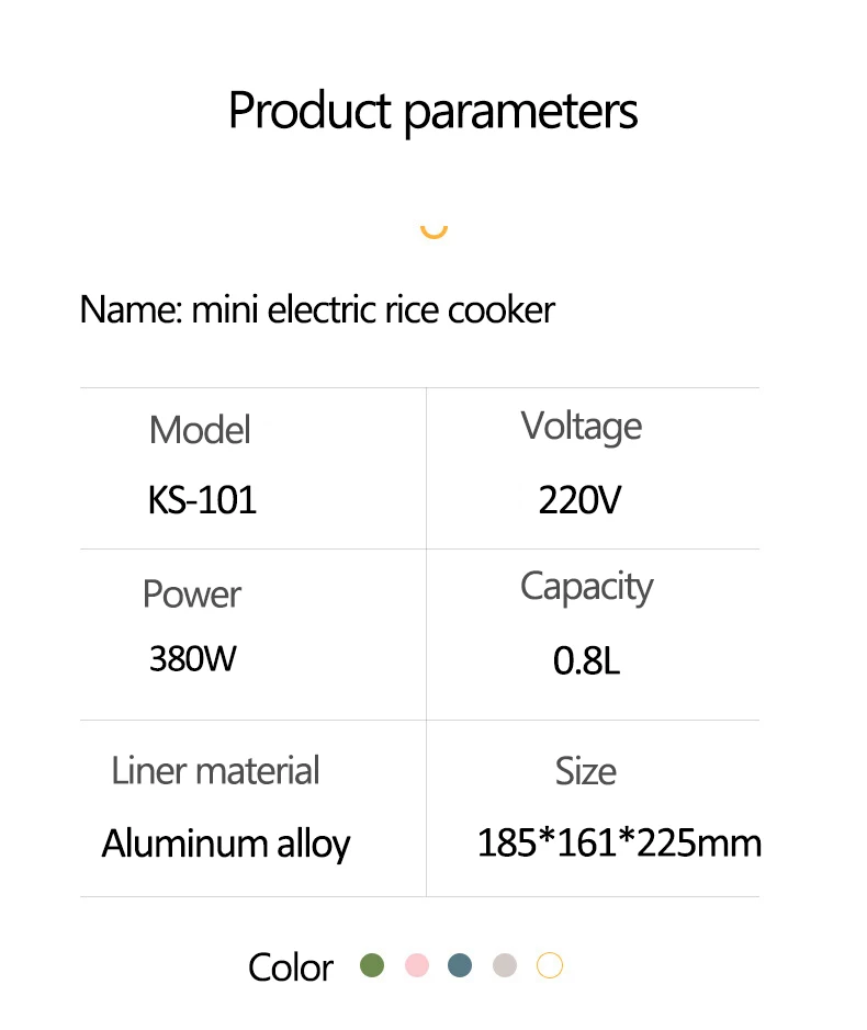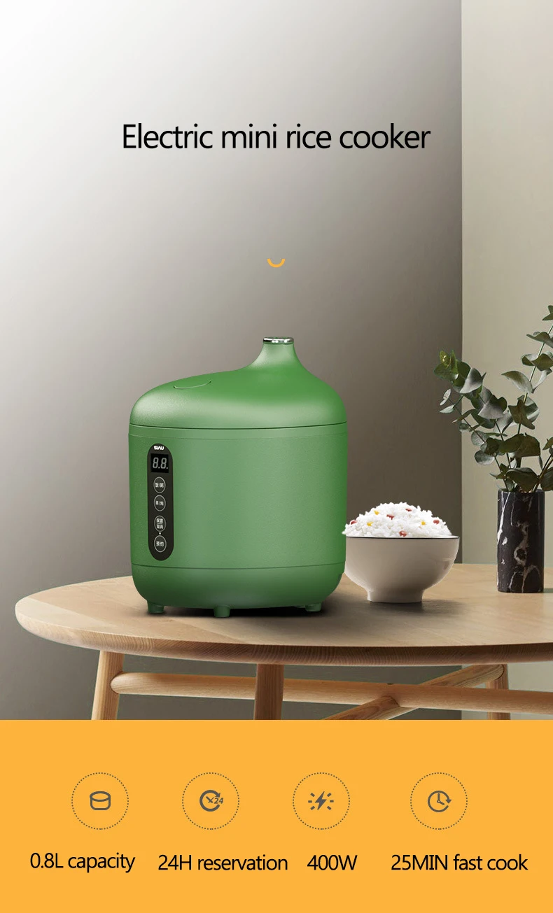 Емкость 108 л, подходит для 1-2 человек Умный таймер на 2,24 часов 3. Расширенный Выход пара используется для эффективного контроля потока котла под давлением пара. 4. Антипригарная подкладка из алюминиевого сплава. Эффективная теплопроводность или равномерное нагревание