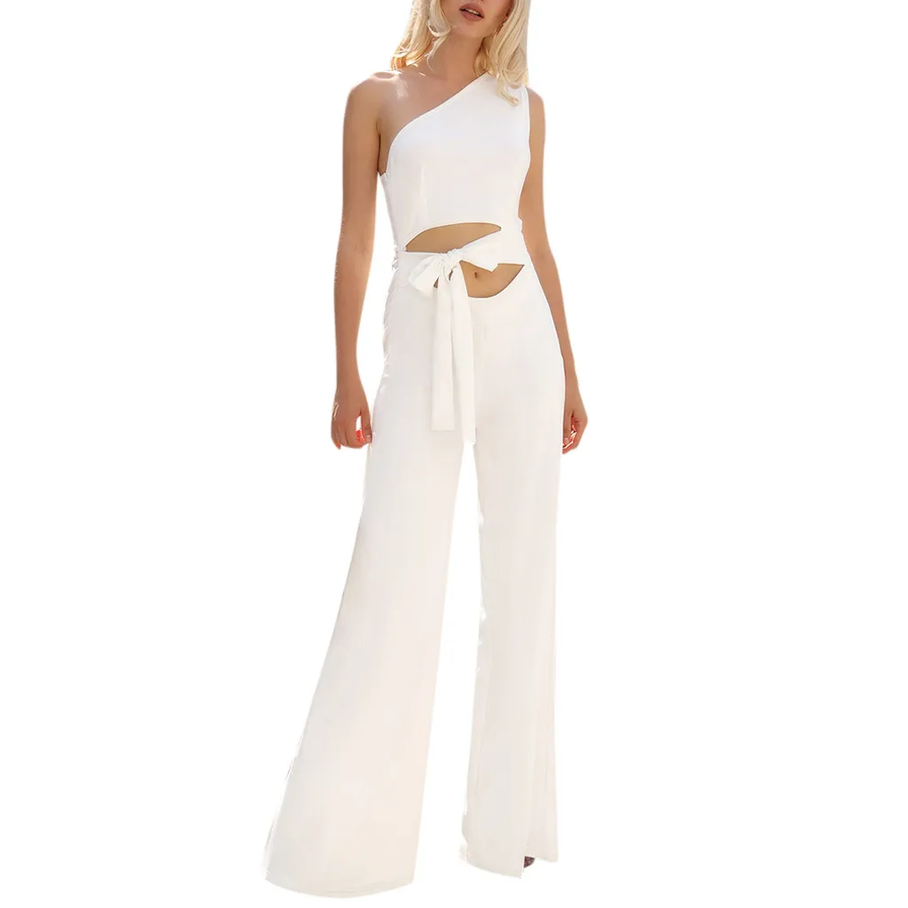Женские комбинезоны больших размеров, однотонные комбинезоны без рукавов с высокой талией, на шнуровке, с открытыми плечами, расклешенные комбинезоны monos de fiesta, новинка 2020, Прямая поставка E
