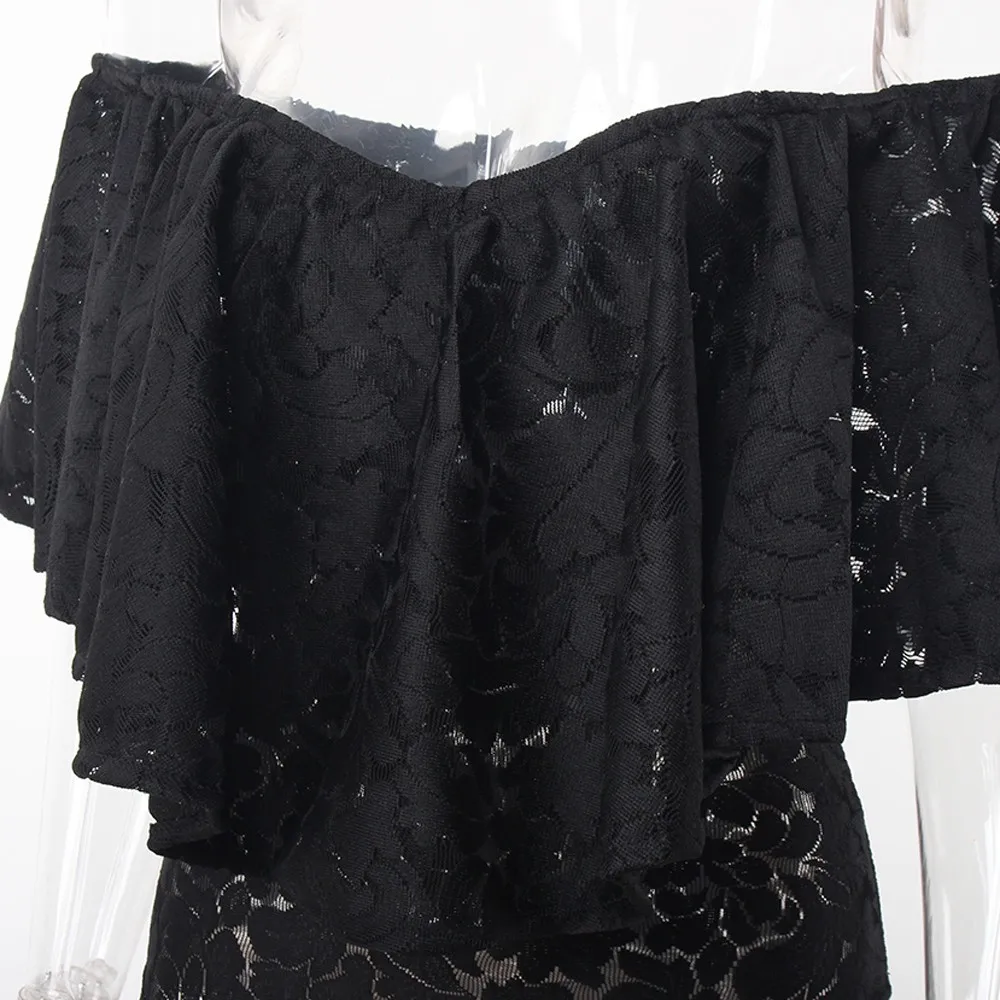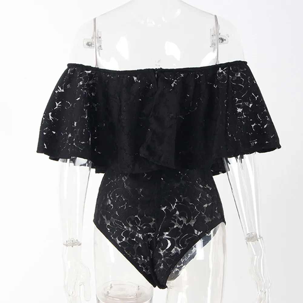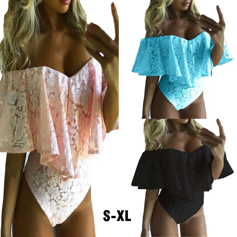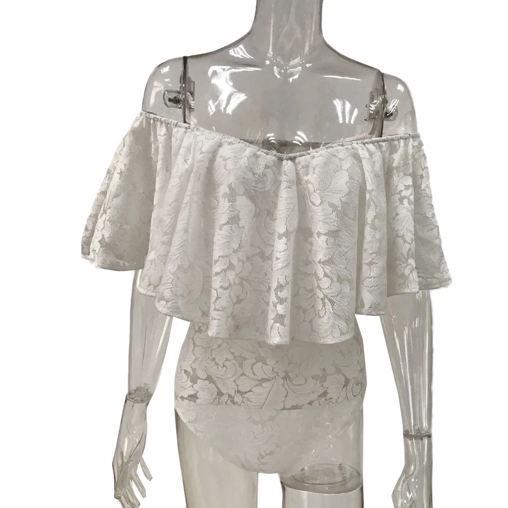 Женский кружевной купальник с оборками и открытыми плечами, эластичный слитный купальник для вечеринок