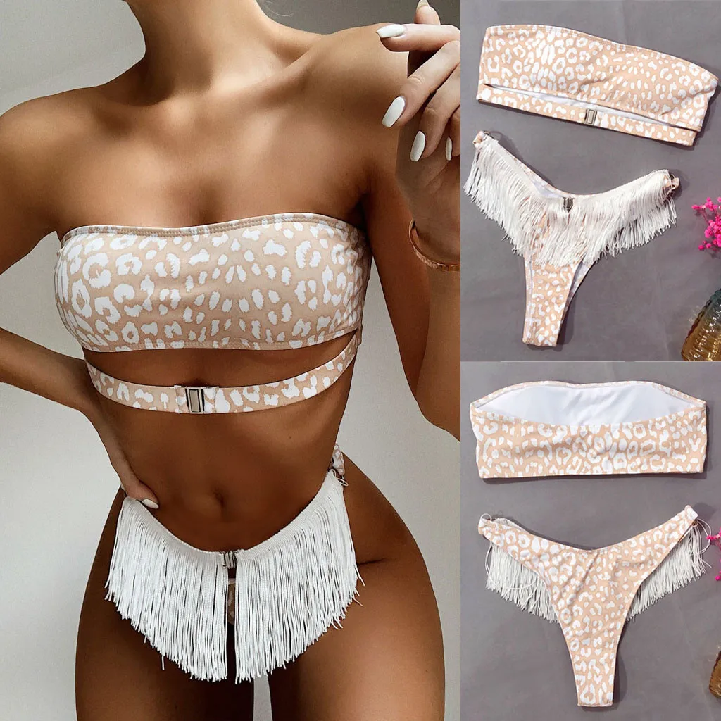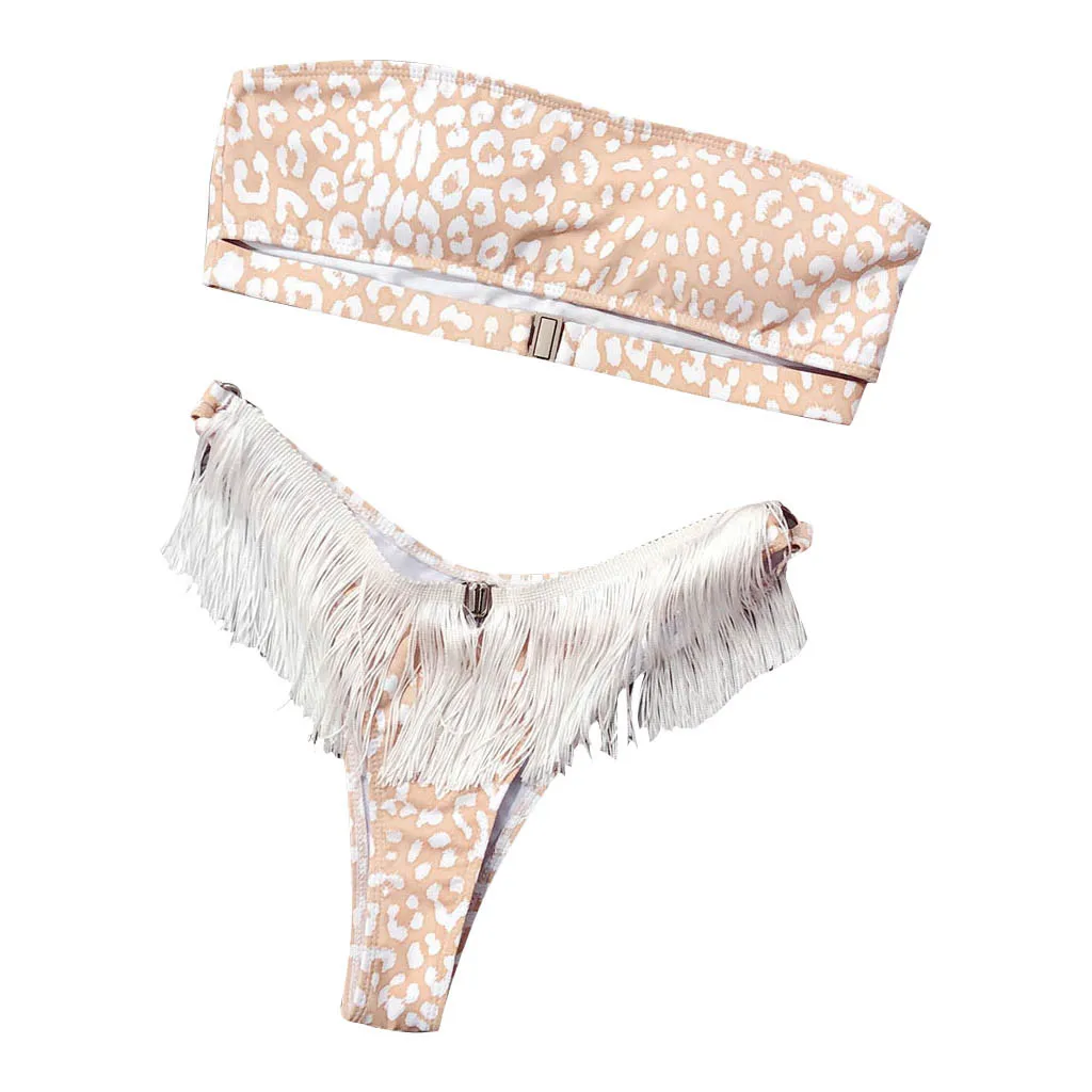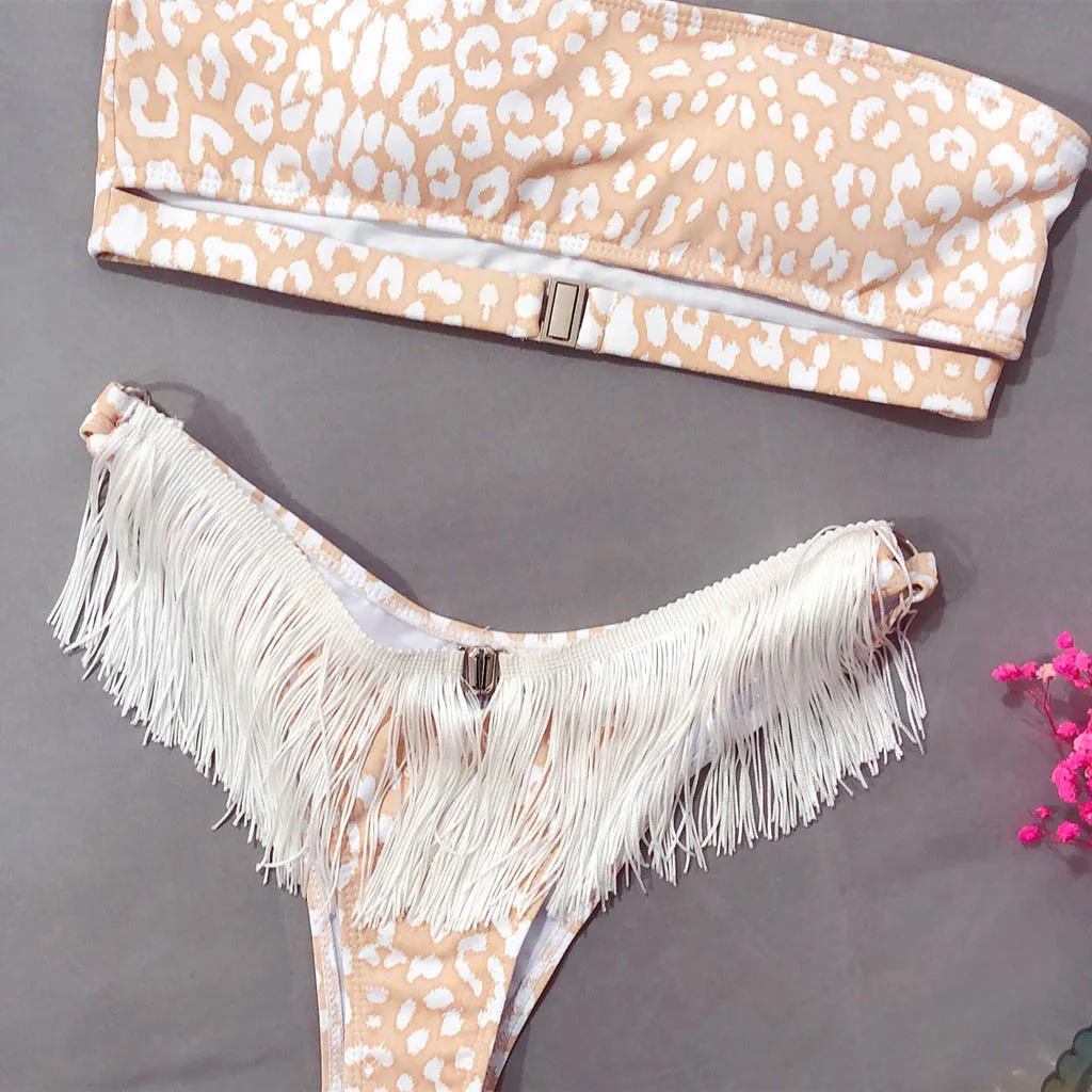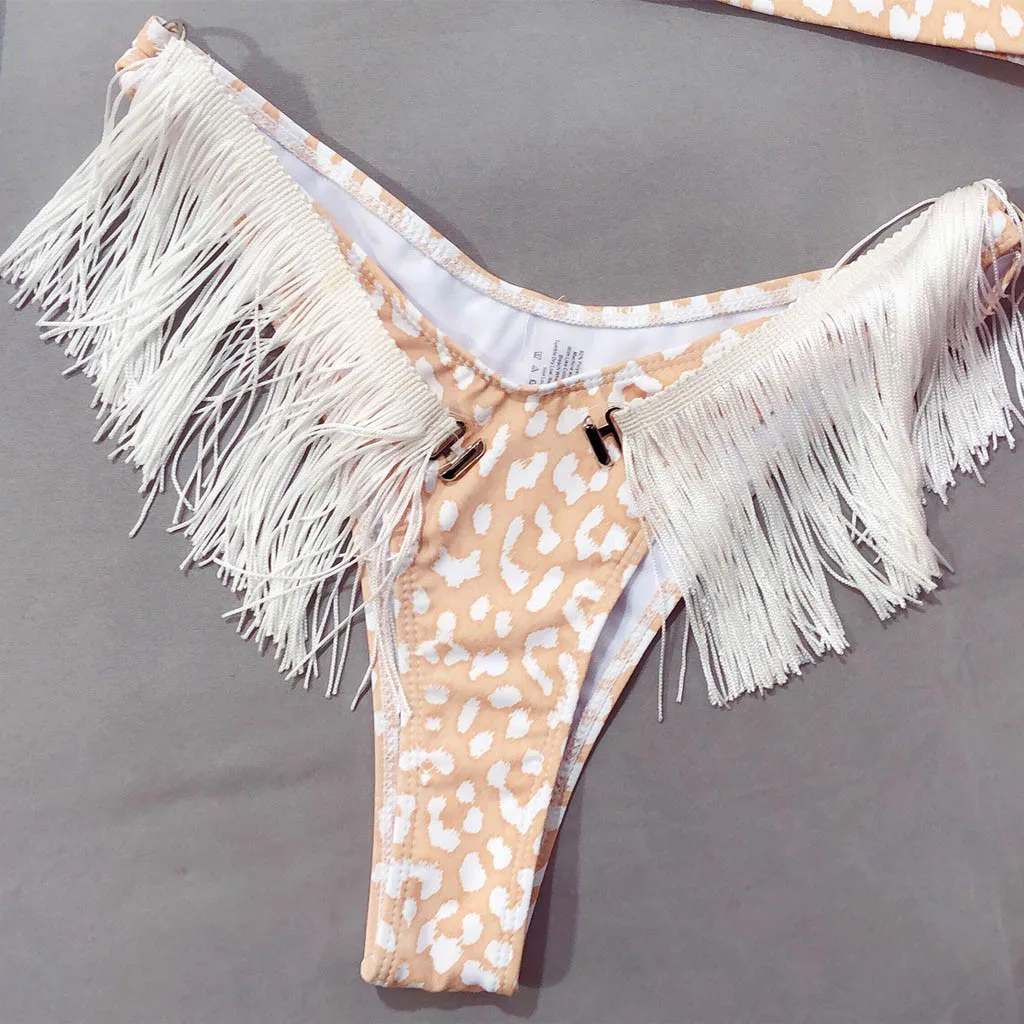 Сексуальное женское бикини с кисточками и принтом, пуш-ап Мягкий купальник, купальник, комплект пляжной одежды