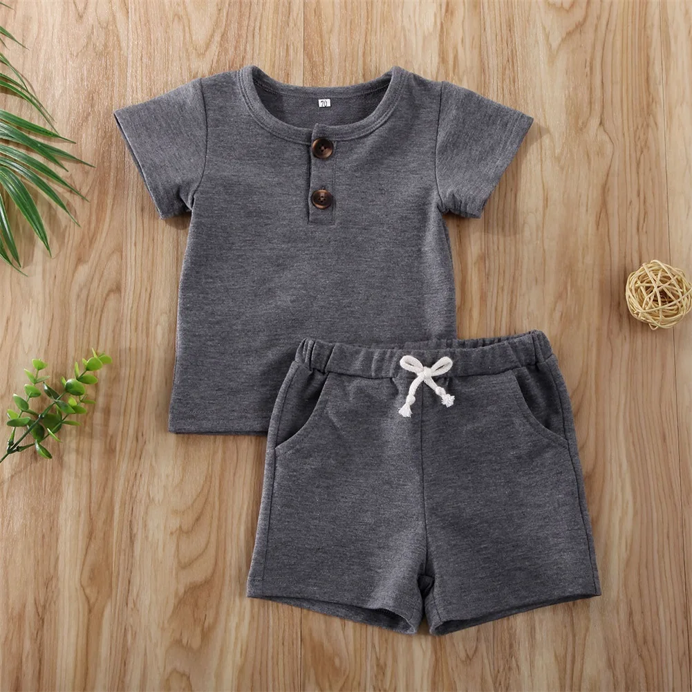 Комплект летней одежды для новорожденных мальчиков, пуловер с короткими рукавами Топ, футболка, шорты, штаны комплект из 2 предметов однотонная одежда для детей 0-2 лет!