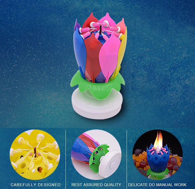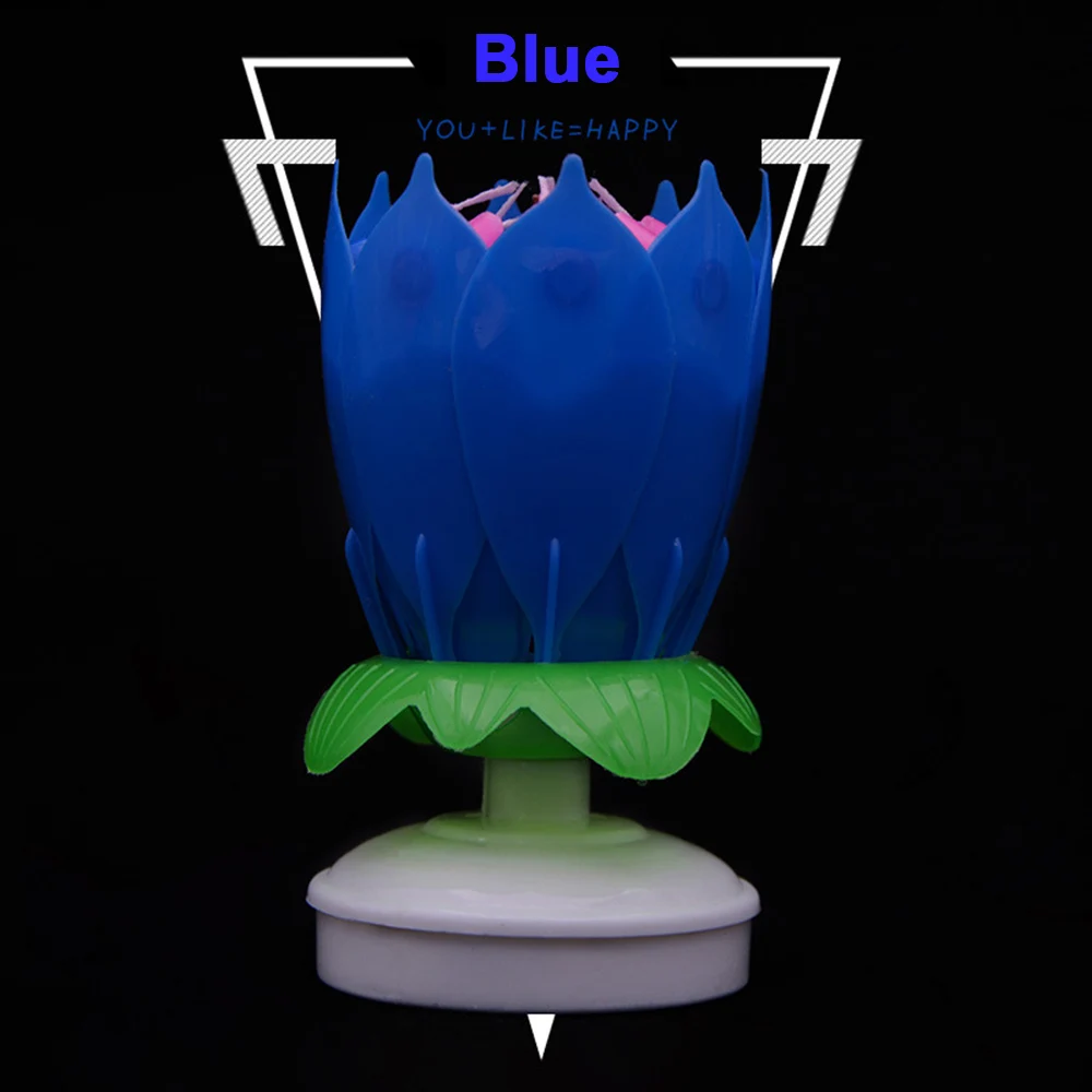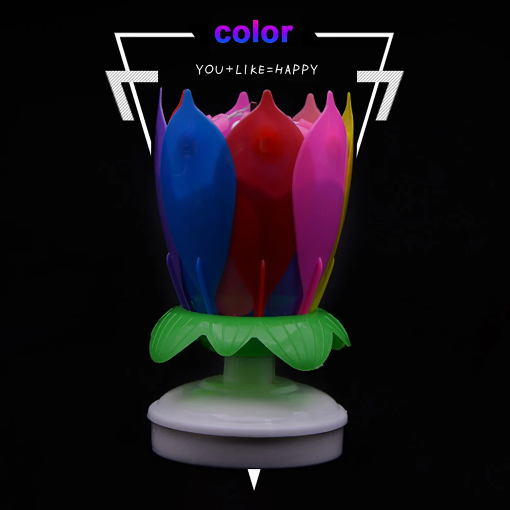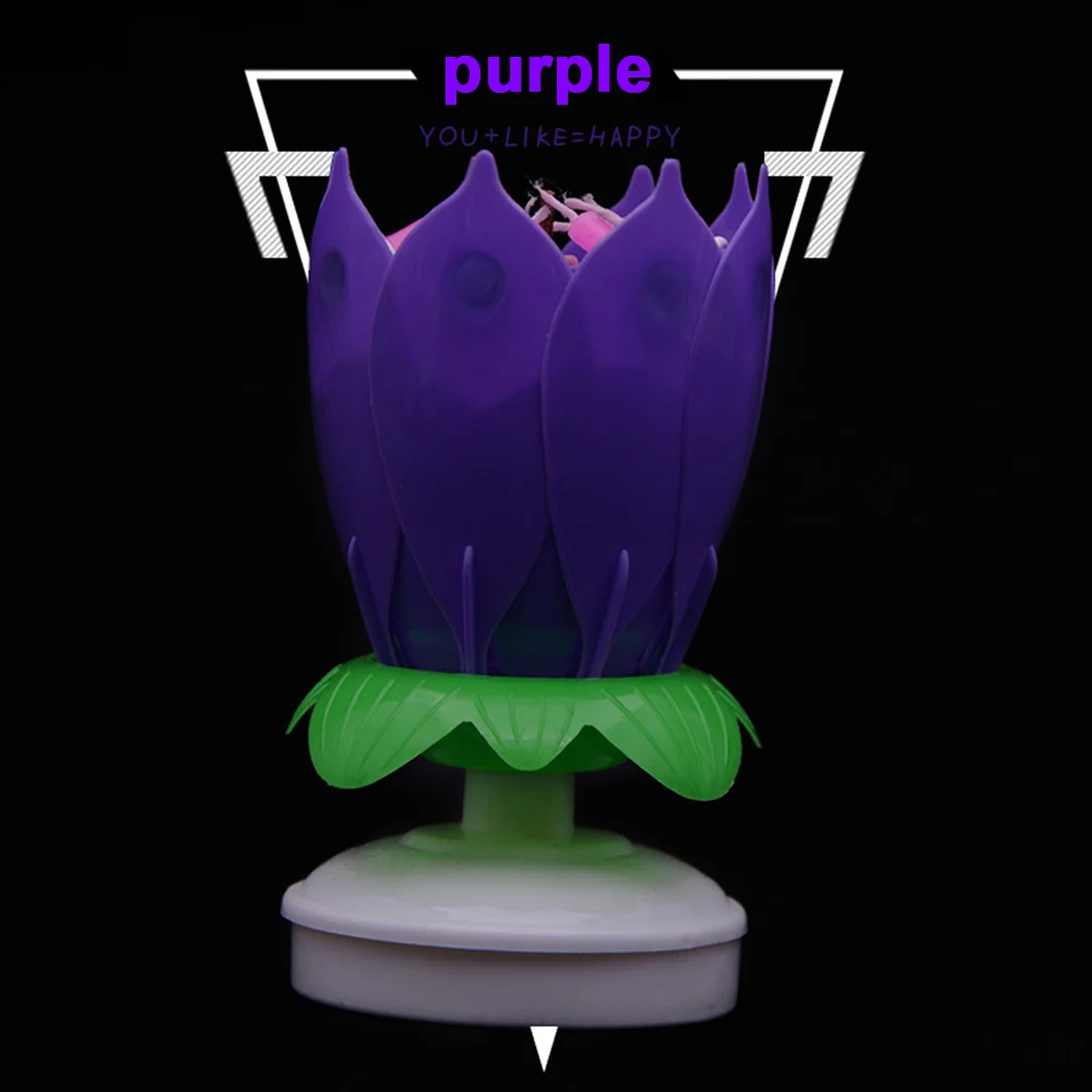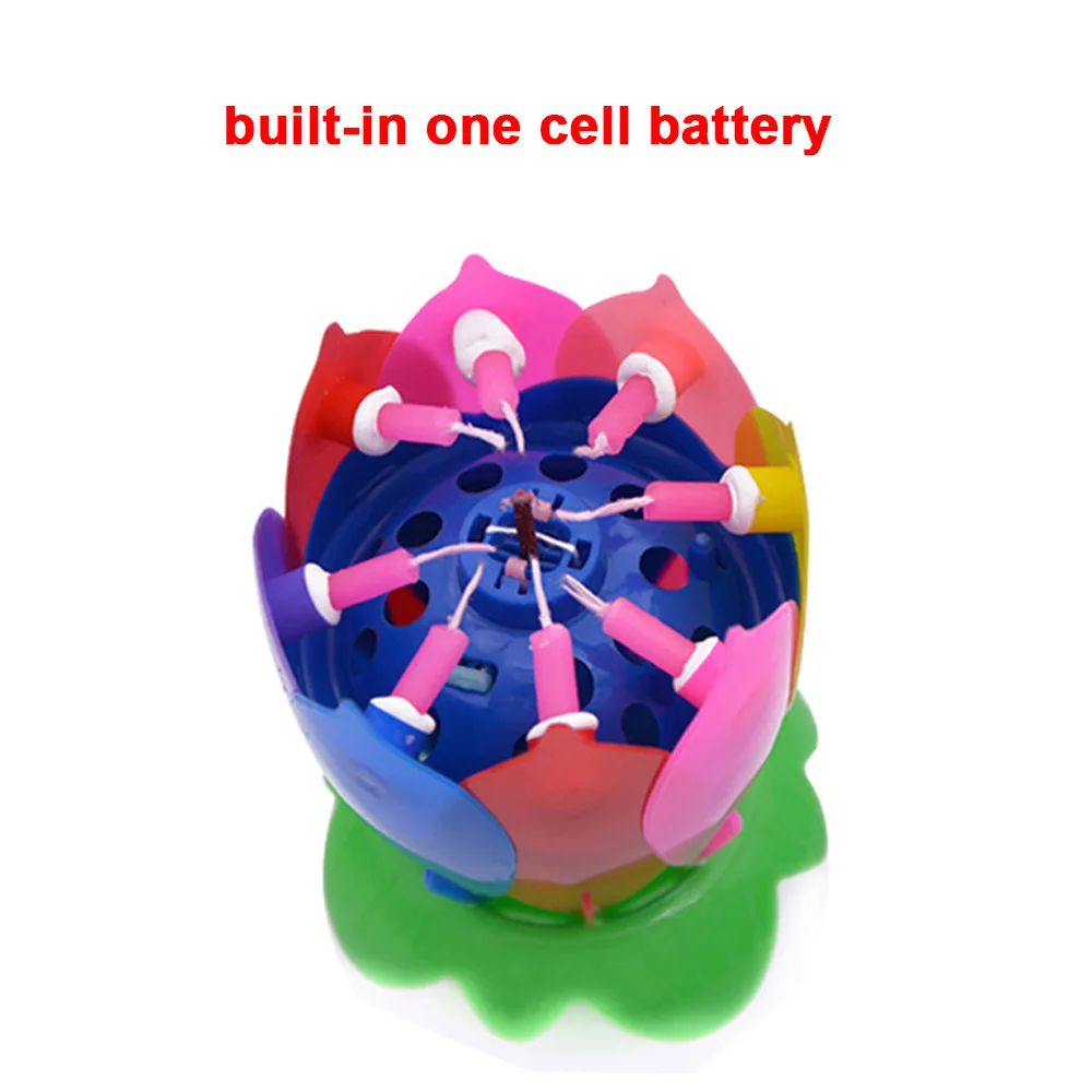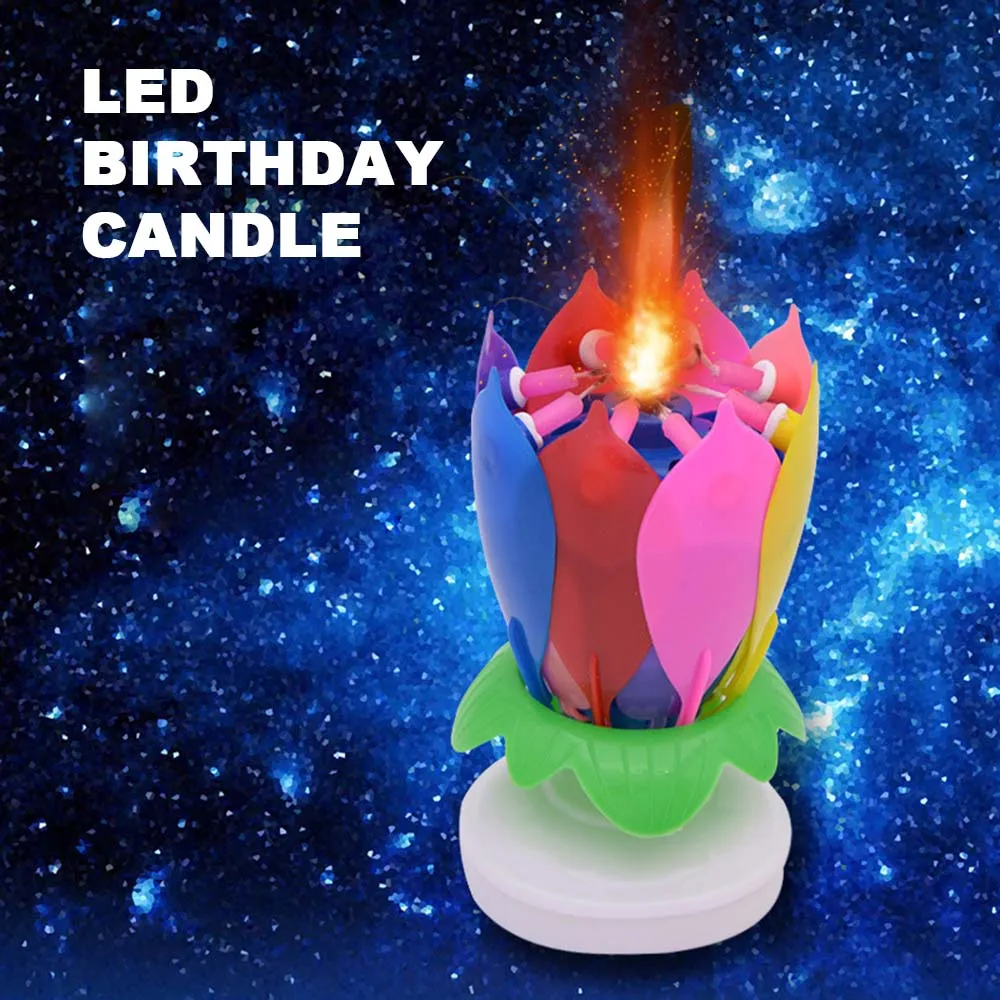 Блестящая свеча на день рождения: красивая свеча в форме лотоса, Автоматически вращающаяся с днем рождения после нажатия средней кнопки, все огни на каждом лепестке будут