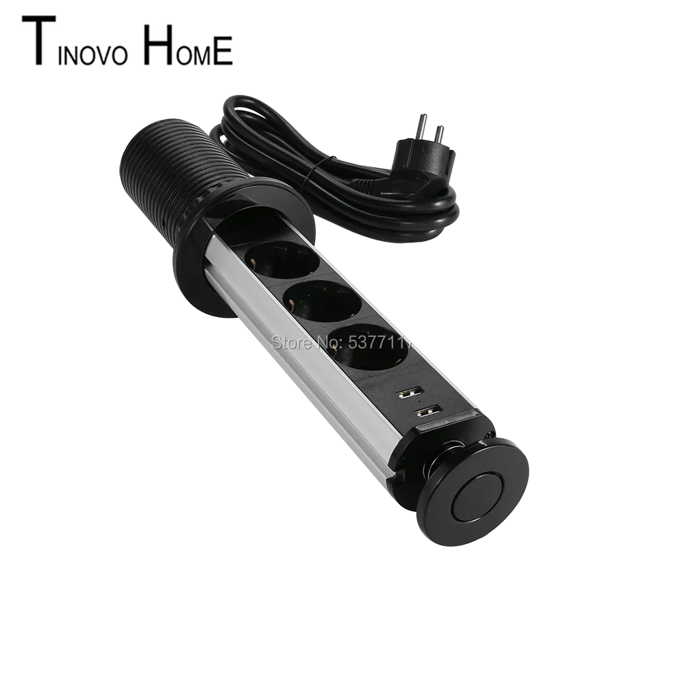 Подтянуть розетка/Разъем EU/алюминиевый сплав/кухня гнездо/столы гнездо/3-адаптеры питания с USB для зарядки 5V 2.1A