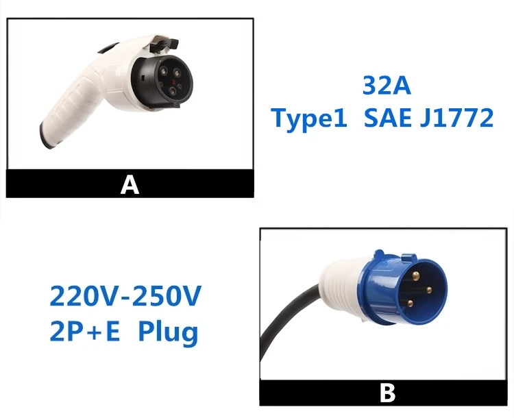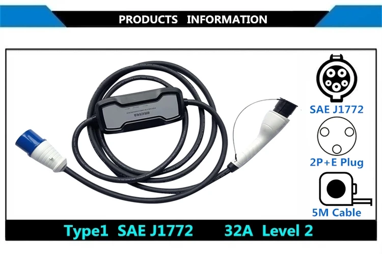 Информация о продукте: • Модель: Тип 1 SAE J1772 • Изделие: портативное зарядное устройство EV • Ток зарядки: 32A • Входное напряжение: однофазный 220-250 В • Рабочая температура:-30 °C ~ + 50 °C