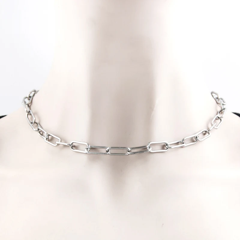 Серебряная/золотая цепочка с замком из нержавеющей стали, ожерелье для женщин и мужчин, цепочка унисекс, ожерелье с тяжелым замком, колье с металлическим воротником