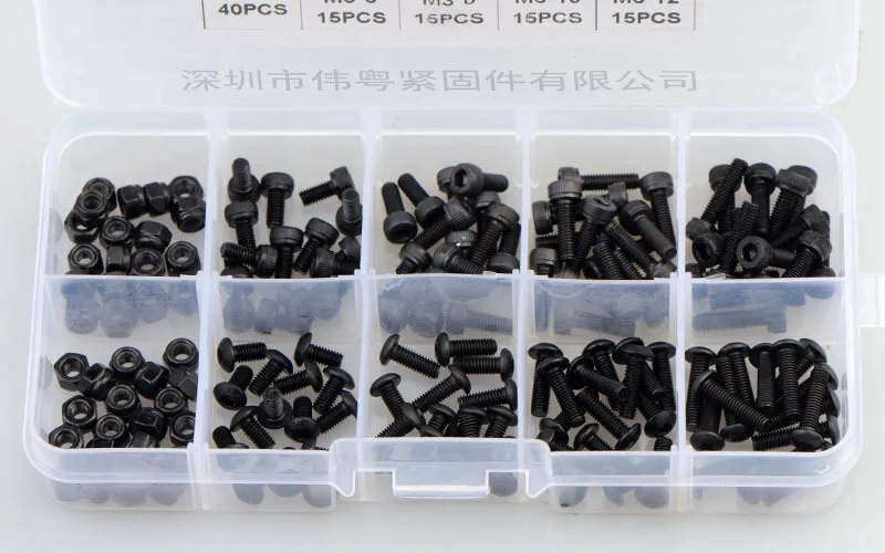 160 шт. M3 * 6/8/10/12 повышенной прочности с полукруглой головкой \ круглый носок с шестигранной головкой нейлоновая гайка с комбинированным набором 12,9-912 10,9-7380 Вес нетто: 125,3 г