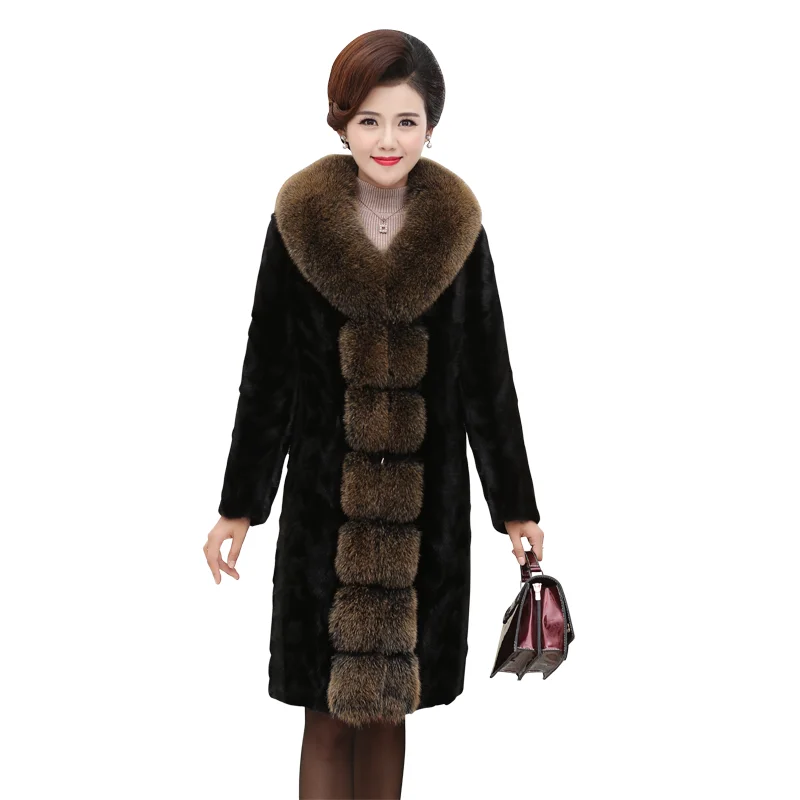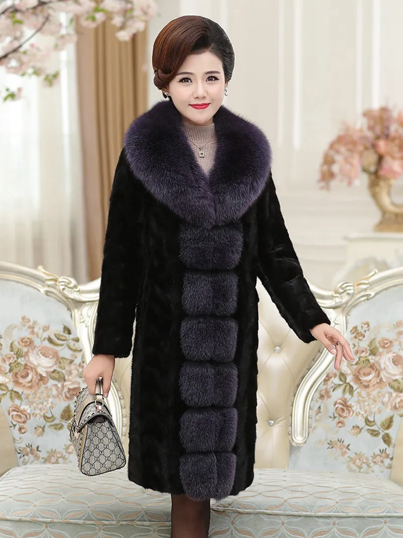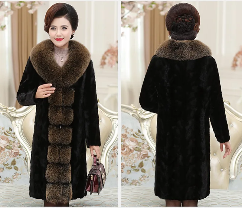 Пальто из натурального меха норки с воротником из лисьего меха