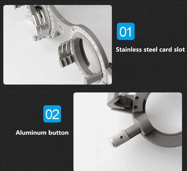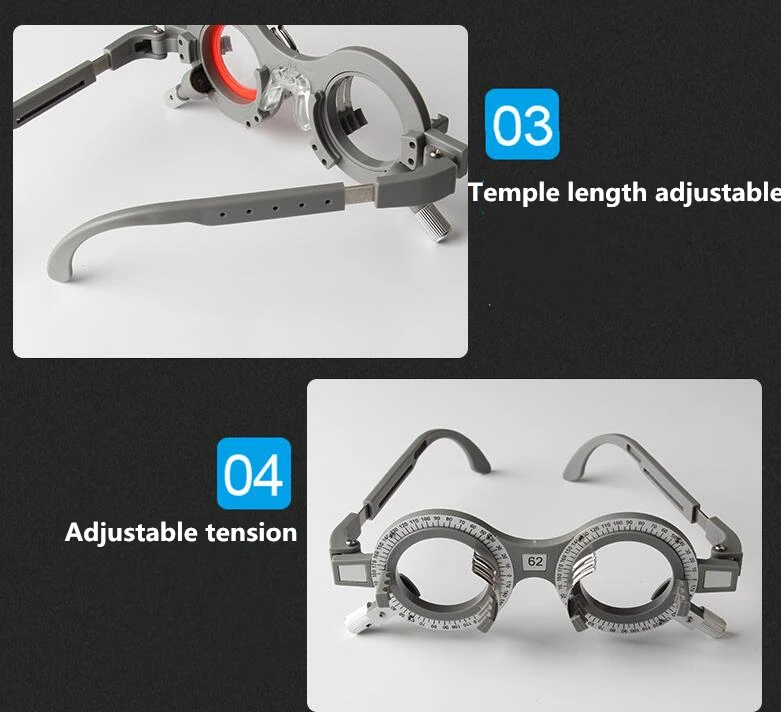 Название: оптиметрическая рамка Материал оправы: высококачественный нейлон Вес: 35 г Диапазон регулировки дужек: пять уровней регулировки, около 90-90 мм (каждый размер увеличивается от 1 до 1 мм) Характеристики межзрачкового расстояния: 54, 56, 58, 60, 62, 64,66. 68, 70 мм Шкала оси индексной пластины: 165 °-0 °-180 °-25 °. Шкала оси распределяется против часовой стрелки вдоль оси рамы, с интервалом 5 ° Вращение вокруг оптической оси: вращение 360 °