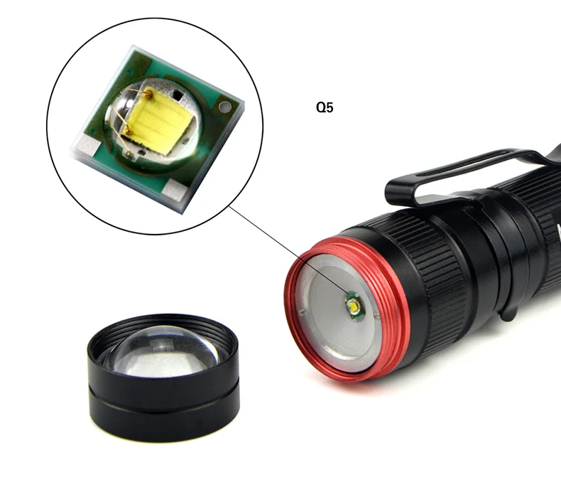 Описание: Светодиодный источник света: Q5 Режим: 3 режима (высокий-низкий-Стробоскоп) Цвет: черный Излучаемый Цвет: белый светильник Переключатель: Хвостовая крышка Clicky/Clickie Объектив: выпуклая линза Чехол Материал: Прочный авиационный алюминий Аккумулятор для 1x1450 0/1xAA (не входит в комплект) Посылка включает в себя: Фонарь (1 шт.)