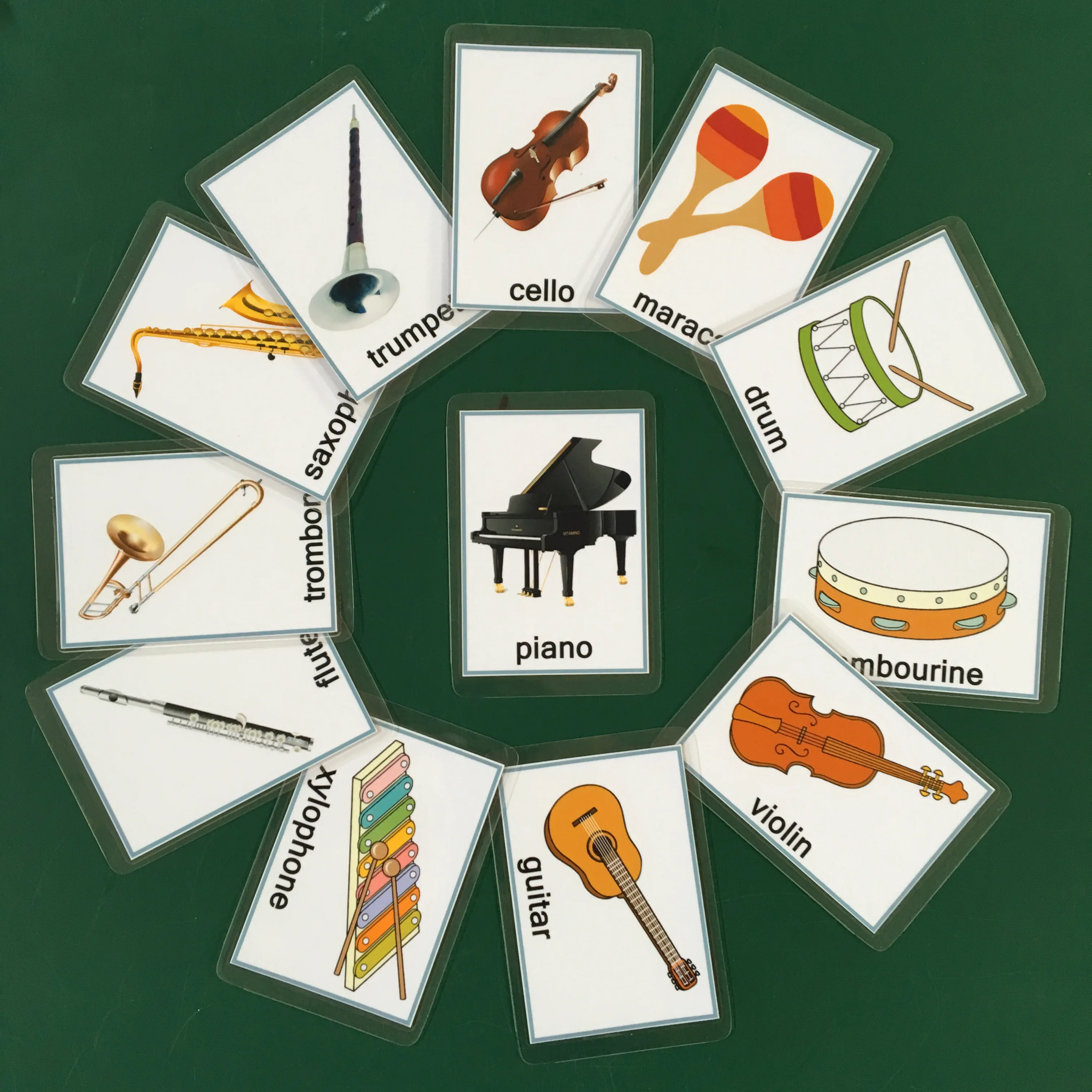 12 шт./компл. карточки английские слова карты памяти Музыкальные инструменты когнитивные карточки обучающие игрушки для детей