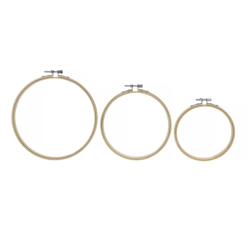 Три разных размера вышивальных обручей.