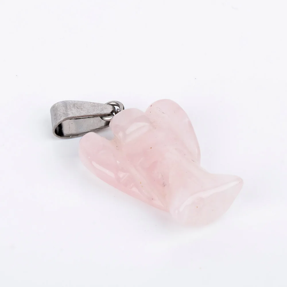 Розовый КВАРЦЕВЫЙ Природный кристалл Карманный ангел-хранитель скульптура ремесла кулон украшения
