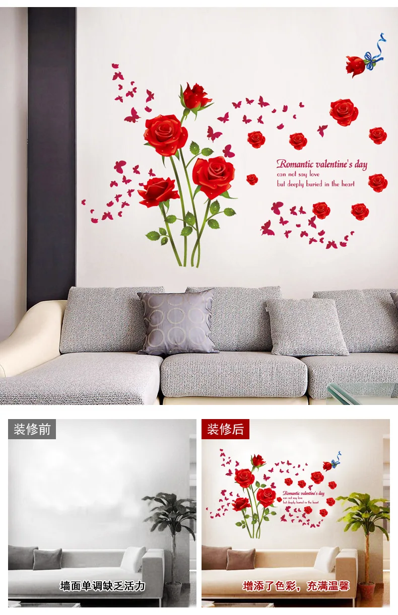 3D домашний декор, настенная бумага, наклейка s пламенная Роза, для спальни, гостиной, ТВ, фоновое украшение, наклейка для спальни, теплая, съемная