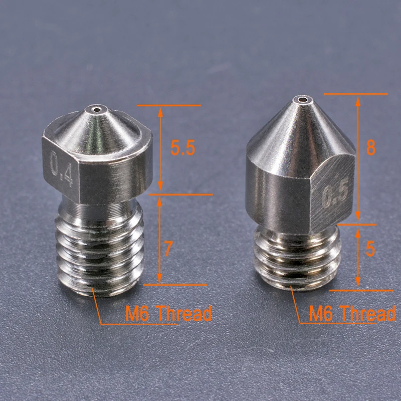 Насадка из закаленной стали может быть идеально совместима со специальными нитями, такими как PEI, PEEK, углеволоконная смесь, смесь стекловолокна и PETG. Насадки MK8 С Резьбой М6 совместимы с Ender 3 CR10 Hotend.